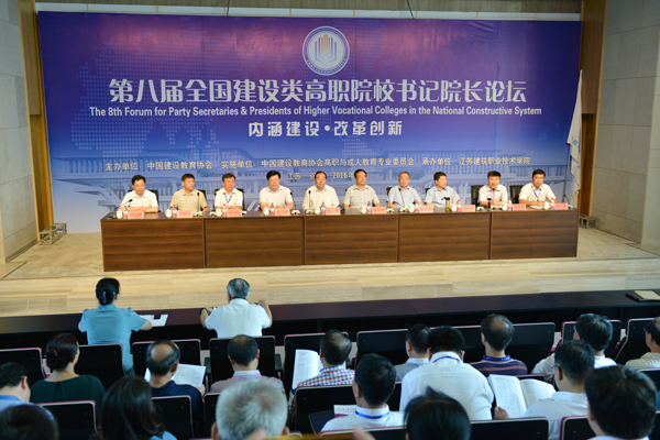7月23-24日,全国建设类高职院校第八届书记院长论坛在江苏建筑职业技术学院召开,本次论坛的主题是“内涵建设•改革创新”。中国建设教育协会理事长刘杰、江苏省建设教育协会秘书长陈曦、中国建设教育协会高职与成人教育专业委员会主任王凤君等领导出席并讲话。来自全国各地50家单位的100余名代表参加论坛。刘国生校长、程忠国副校长、周晖校长助理、曹春华处长、潘丹副处长等五人出席会议。
