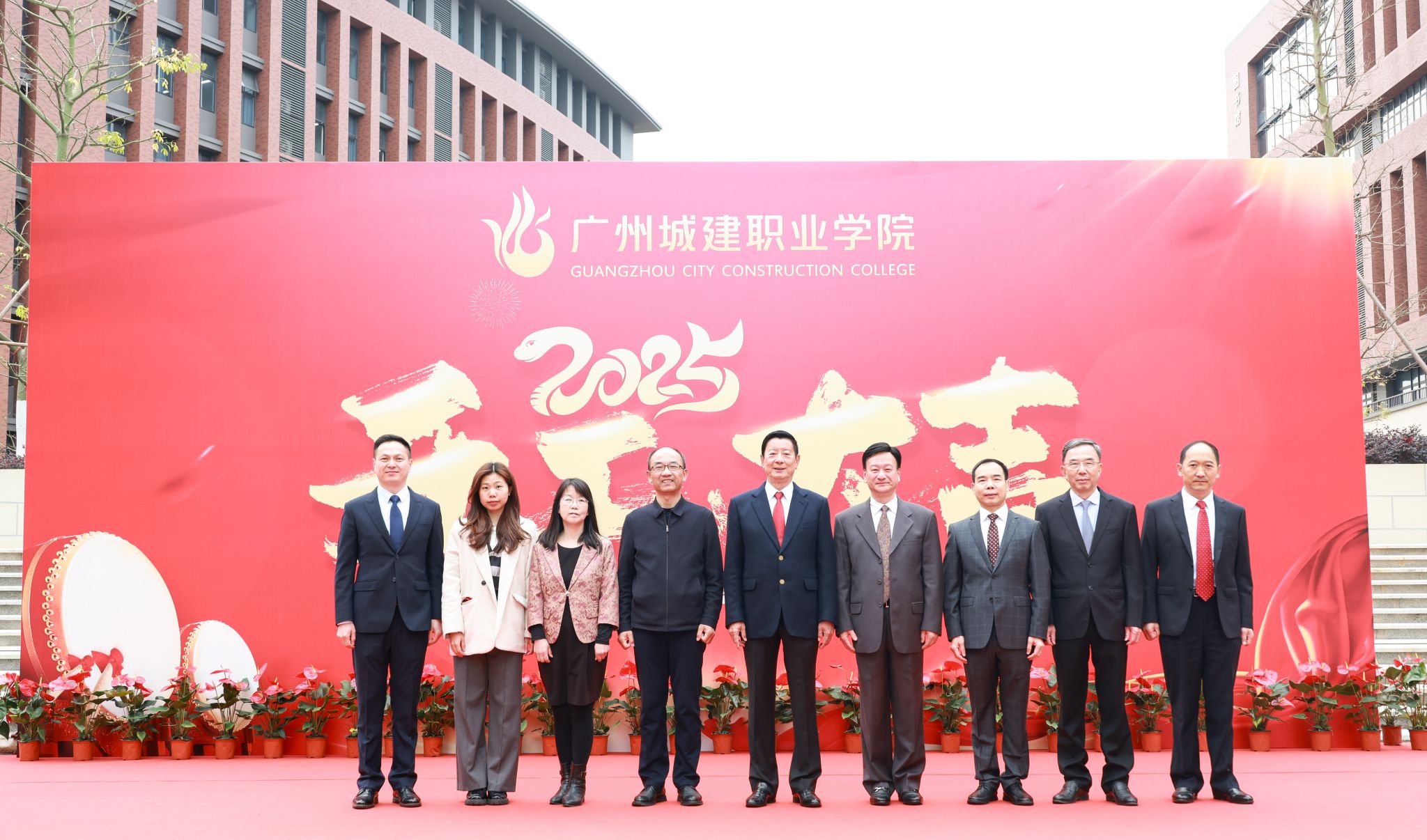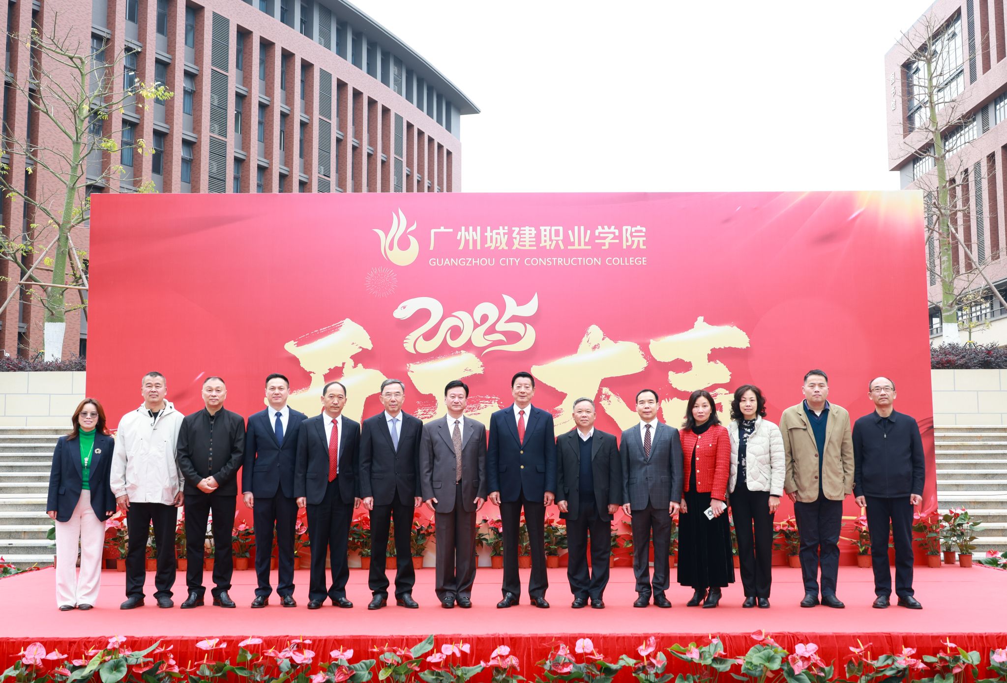 仪式结束后,刘维嘉董事长携公司、学校领导与新校区二级学院领导班子合影留念,与此同时,还有不少教职员工驻足拍照,背景中恢宏大气的新校区教学楼、图书馆等建筑群在晨光中熠熠生辉,与教职工们的笑脸共同构成一幅生机勃勃的新春画卷。