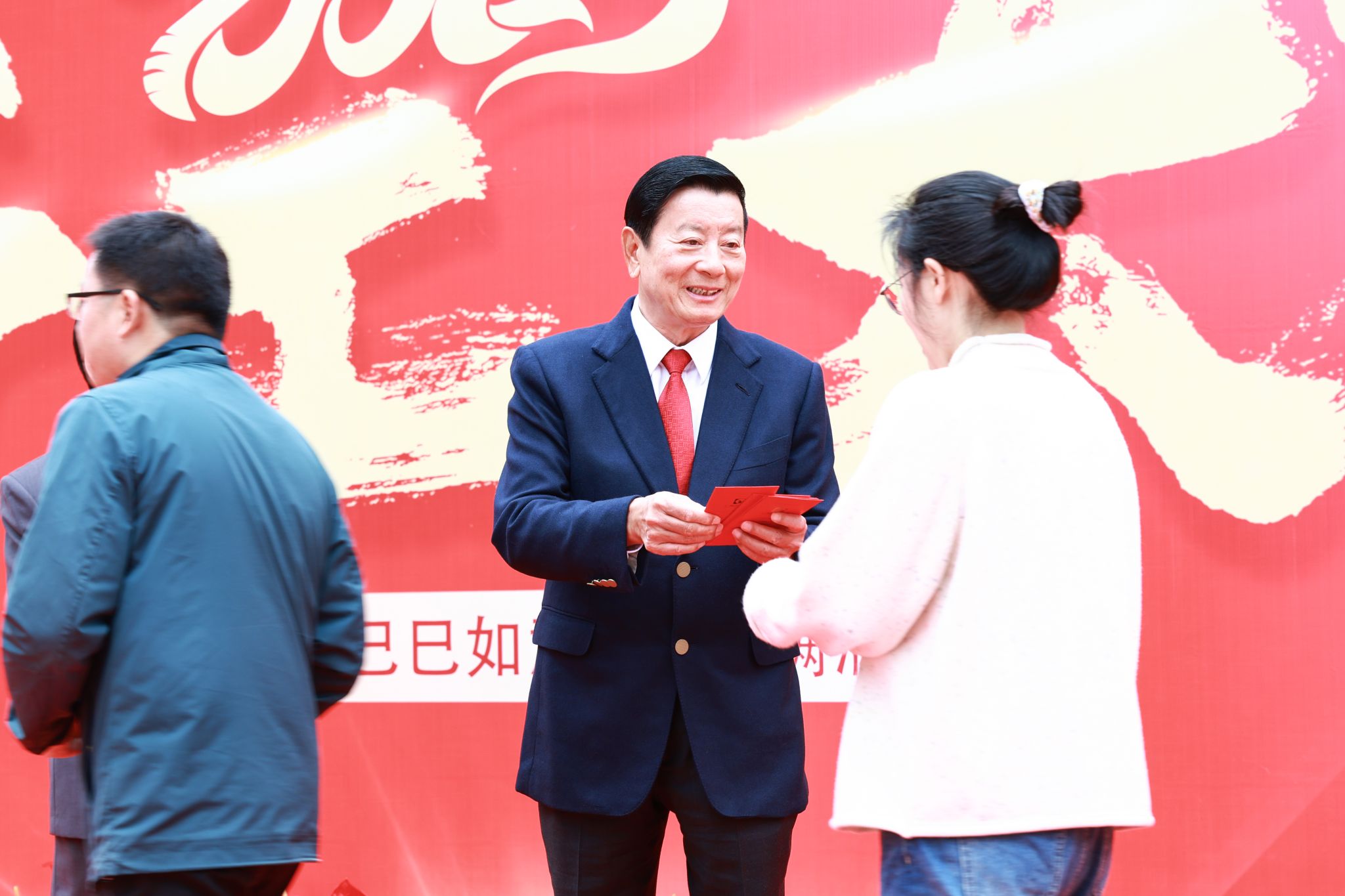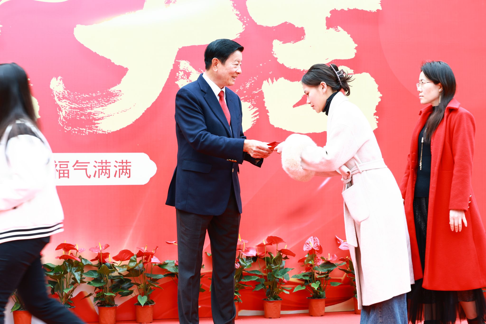 紧接着,红包派发现场气氛热烈而温馨,刘维嘉董事长将饱含祝福的开年红包一一送到了教职员工手中,祝愿大家新的一年红红火火,教职员工们纷纷表示,董事长亲自派发红包特别有仪式感,更感受到集团和学校对一线教职员工的重视和关怀,现场洋溢着浓浓的温情。、