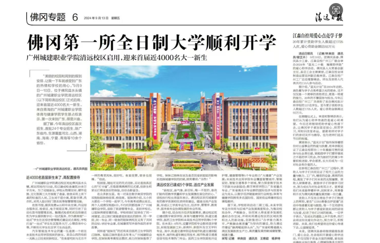据了解,今年清远校区首次招生,首批24个专业招生,除广东省内,生源覆盖河北、山西、湖南、海南、宁夏、青海等10余个省份。