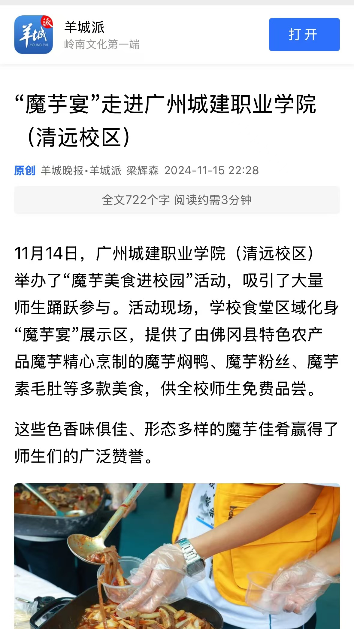 该校副校长杨清国表示,魔芋食品以其独特的口感和低热量特性备受当下年轻人青睐,“魔芋进校园”的活动可以在师生中推广健康饮食理念,丰富校园餐饮文化,希望校地双方能基于当地产业需求和各自优势,推进校企合作、产学研深度融合,打造佛冈魔芋产销流通专业化、品质化产业路线,共同推动县域农业产业高质量发展。