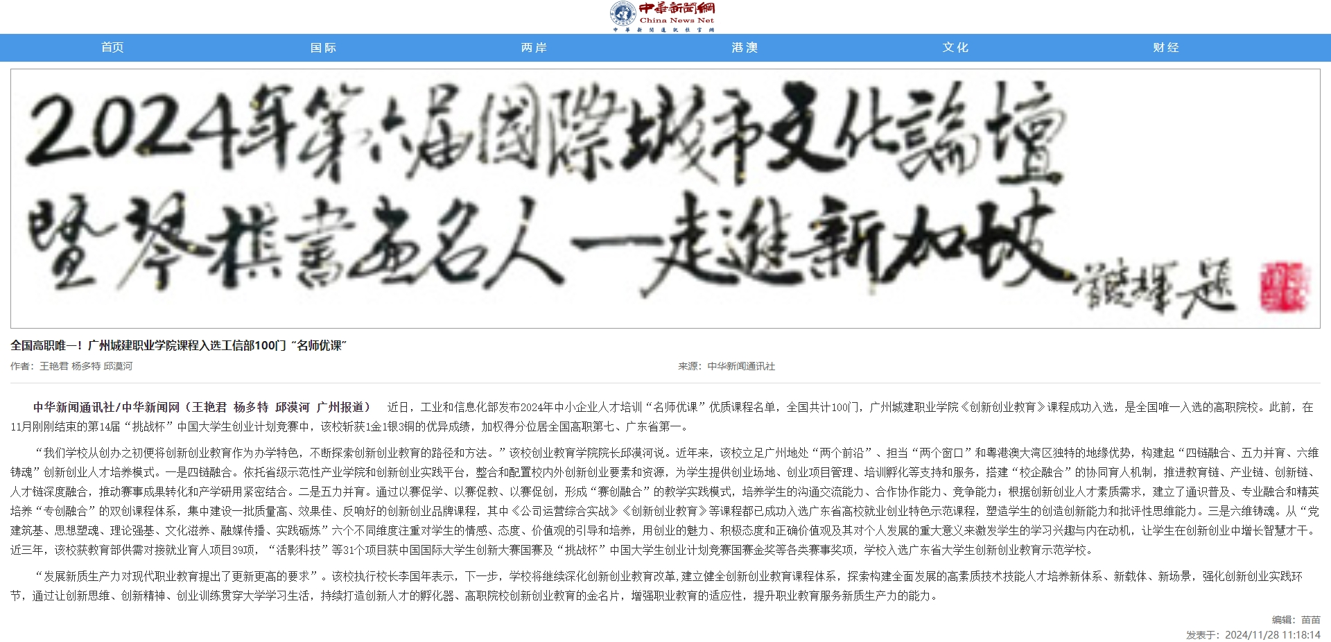近日,工业和信息化部发布2024年中小企业人才培训“名师优课”优质课程名单,全国共计100门,伟德国际1946源自英国《创新创业教育》课程成功入选,是全国唯一入选的高职院校。此前,在11月刚刚结束的第14届“挑战杯”中国大学生创业计划竞赛中,该校斩获1金1银3铜的优异成绩,加权得分位居全国高职第七、广东省第一。