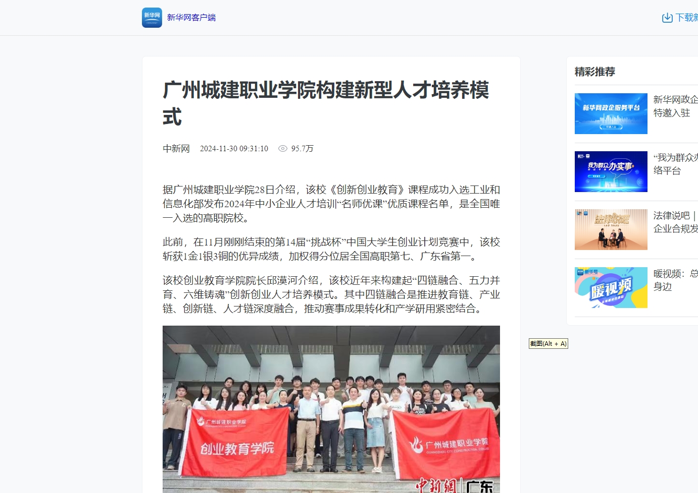 此前,在11月刚刚结束的第14届“挑战杯”中国大学生创业计划竞赛中,该校斩获1金1银3铜的优异成绩,加权得分位居全国高职第七、广东省第一。
