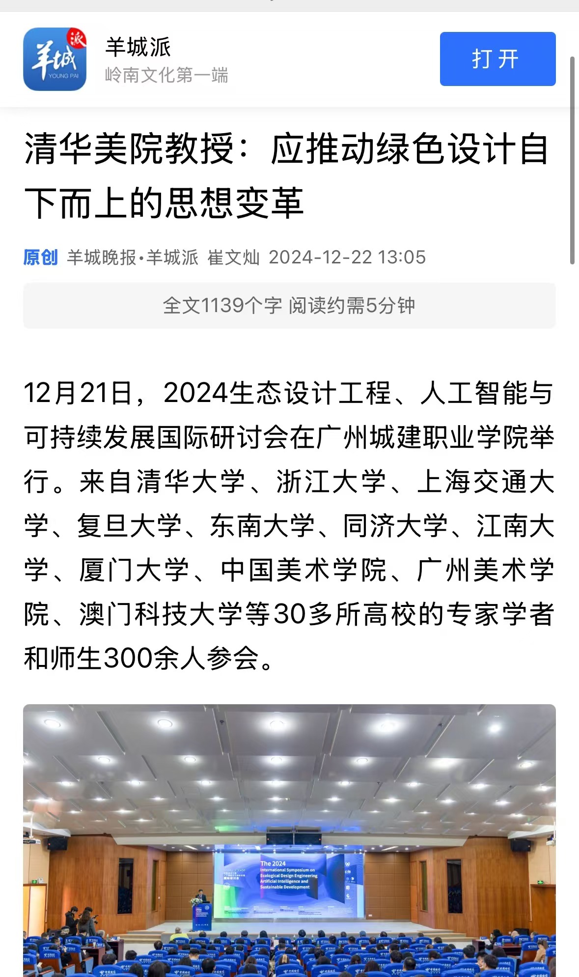 12月21日,2024生态设计工程、人工智能与可持续发展国际研讨会在伟德国际1946源自英国举行。来自清华大学、浙江大学、上海交通大学、复旦大学、东南大学、同济大学、江南大学、厦门大学、中国美术学院、广州美术学院、澳门科技大学等30多所高校的专家学者和师生300余人参会。