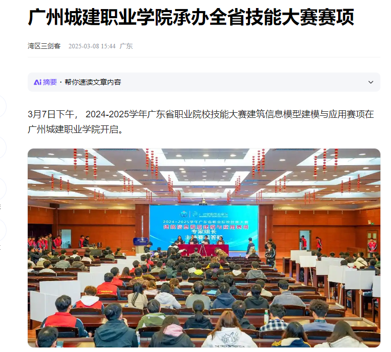 作为广东省职业教育领域的重要赛事,本届BIM赛项聚焦建筑行业数字化转型需求,设置建筑建模、结构建模、机电建模及施工场地布置等核心考核模块,全面检验选手BIM技术应用能力与工程实践素养。