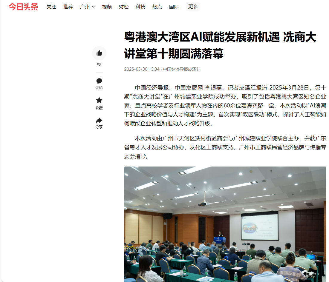 广州市民营经济品牌与传播专委会常务副主任、天河区冼村街道商会会长陈治军在专题访谈中表示:"面对AI技术带来的产业变革,我们正着力构建'政产学研用'五位一体的青年就业联盟。通过精准对接高校教育资源、企业用人需求与政府政策支持,打造全链条人才服务体系,为粤港澳大湾区建设提供强有力的人才支撑。"