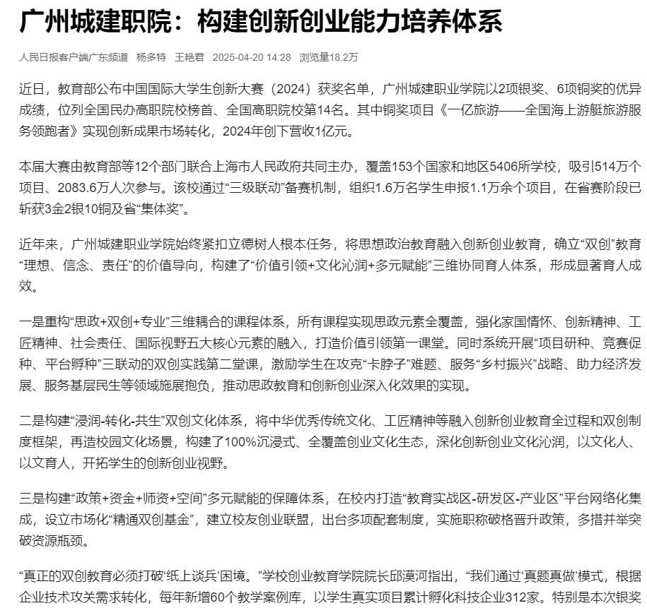 本届大赛由教育部等12个部门联合上海市人民政府共同主办,覆盖153个国家和地区5406所学校,吸引514万个项目、2083.6万人次参与。该校通过“三级联动”备赛机制,组织1.6万名学生申报1.1万余个项目,在省赛阶段已斩获3金2银10铜及省“集体奖”。