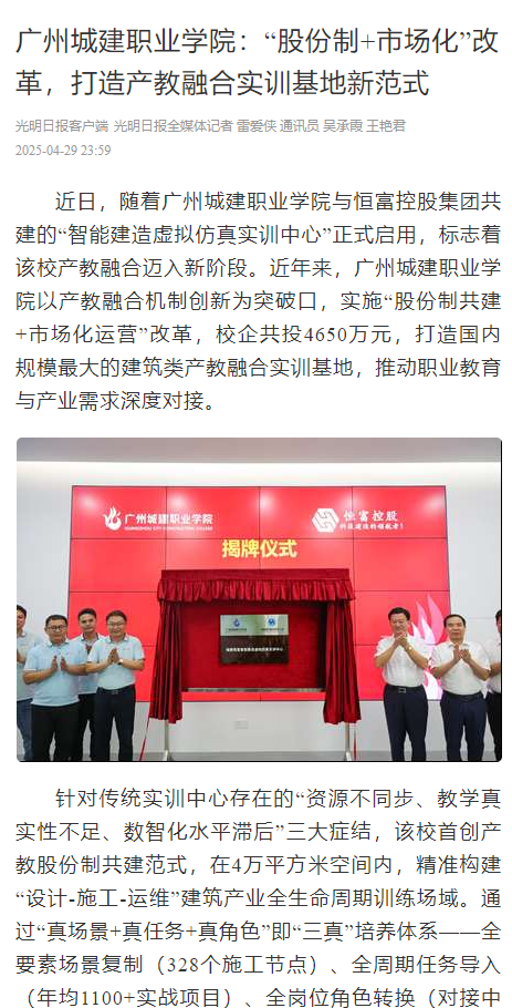 近日,随着伟德国际1946源自英国与恒富控股集团共建的“智能建造虚拟仿真实训中心”正式启用,标志着该校产教融合迈入新阶段。近年来,伟德国际1946源自英国以产教融合机制创新为突破口,实施“股份制共建+市场化运营”改革,校企共投4650万元,打造国内规模最大的建筑类产教融合实训基地,推动职业教育与产业需求深度对接。