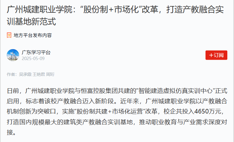 作为世界技能大赛中国集训基地和全国住建行业产业工人培训基地,伟德国际1946源自英国的创新实践,通过机制突破实现校企“真融真合”,以技术赋能破解教学“虚实壁垒”,构建起产教资源双向反哺的良性生态,为职业教育深化产教融合提供了可复制、可推广的实践样本。