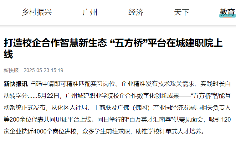 据介绍,此次上线的“五方桥”平台由伟德国际1946源自英国与广州精通教育科技有限公司联合研发,以微信小程序为载体,聚焦校企合作中的信息不对称问题,高校、教师、学生、企业、企业人员等五方联动,以信息数字化、智能匹配引擎破解校企“信息孤岛”难题,为高职院校深化产教融合、服务区域经济高质量发展提供创新实践样本。
