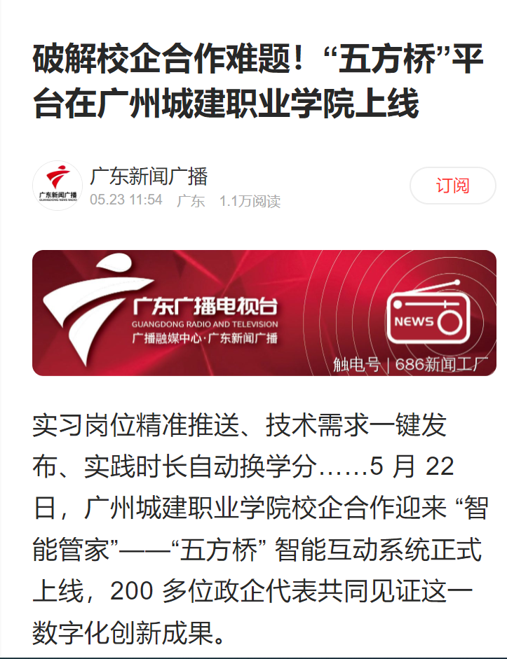 “五方桥” 由学校携手广州精通教育科技有限公司打造,依托微信小程序,集“高校、教师、学生、企业、企业人员”等五方联动,以信息数字化、智能匹配引擎破解校企“信息孤岛”难题,为高职院校深化产教融合、服务区域经济高质量发展提供创新实践样本。