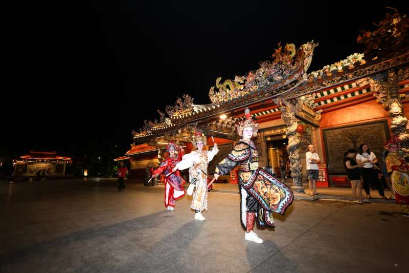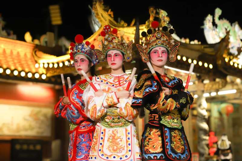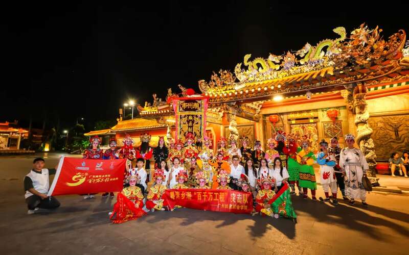 舞毕,姑娘们脸上的油彩被汗水浸得发亮,后背的戏服早已湿透。队员杨佳琪表示,“作为潮州人,第一次看见英歌脸谱时,我惊异于那些夸张的线条竟能勾勒出如此鲜活的神韵。当妆造老师用毛笔蘸着朱砂在我眉间点下‘火眼金睛’时,我忽然意识到自己即将成为非遗文化的载体。我们将会继续传承家乡非遗文化,让文化传承的火种在年轻人的手中愈发明亮。”