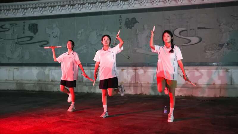 “预备——击!”“哐!”木槌相撞的瞬间,她们的虎口像被电流击中,震得掌心生疼,手中的槌子脱手飞出。“别人暑假在晒美照,我们在晒淤青。”队员杨佳南笑着掀起袖口,手臂上紫红的痕迹像一幅抽象地图,英歌舞的“硬核”远超她们想象。