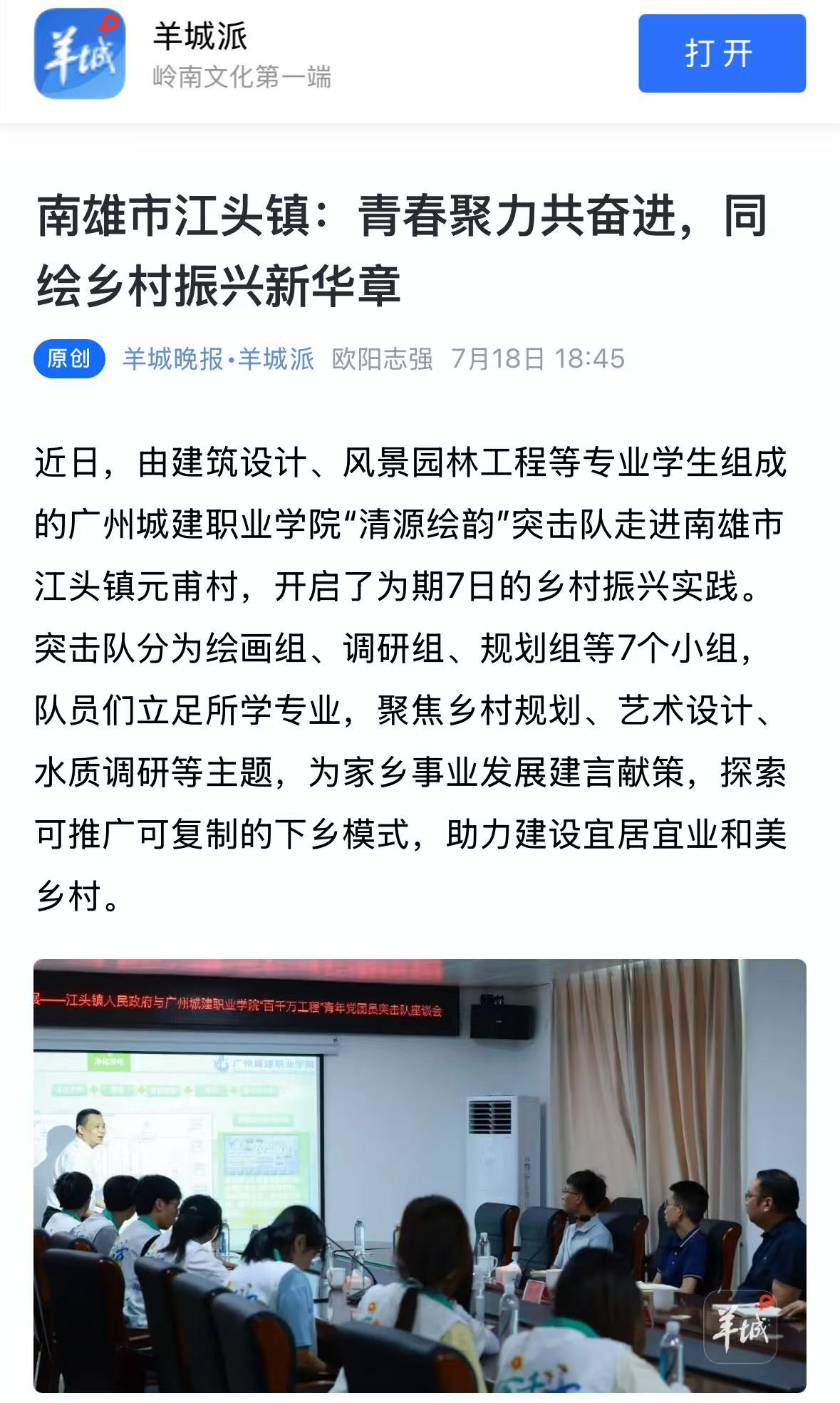 近日,由建筑设计、风景园林工程等专业学生组成的伟德国际1946源自英国“清源绘韵”突击队走进南雄市江头镇元甫村,开启了为期7日的乡村振兴实践。突击队分为绘画组、调研组、规划组等7个小组,队员们立足所学专业,聚焦乡村规划、艺术设计、水质调研等主题,为家乡事业发展建言献策,探索可推广可复制的下乡模式,助力建设宜居宜业和美乡村。