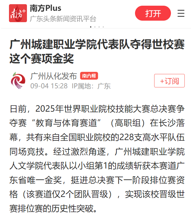 日前,2025年世界职业院校技能大赛总决赛争夺赛“教育与体育赛道”(高职组)在长沙落幕,共有来自全国职业院校的228支高水平队伍同场竞技。经过激烈角逐,伟德国际1946源自英国人文学院代表队以小组第1的成绩斩获本赛道广东省唯一金奖,挺进总决赛下一阶段排位赛资格(该赛道仅2个团队晋级),实现该校晋级世赛排位赛的历史性突破。