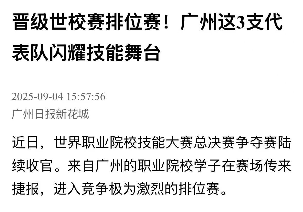 近日,世界职业院校技能大赛总决赛争夺赛陆续收官。来自广州的职业院校学子在赛场传来捷报,进入竞争极为激烈的排位赛。
