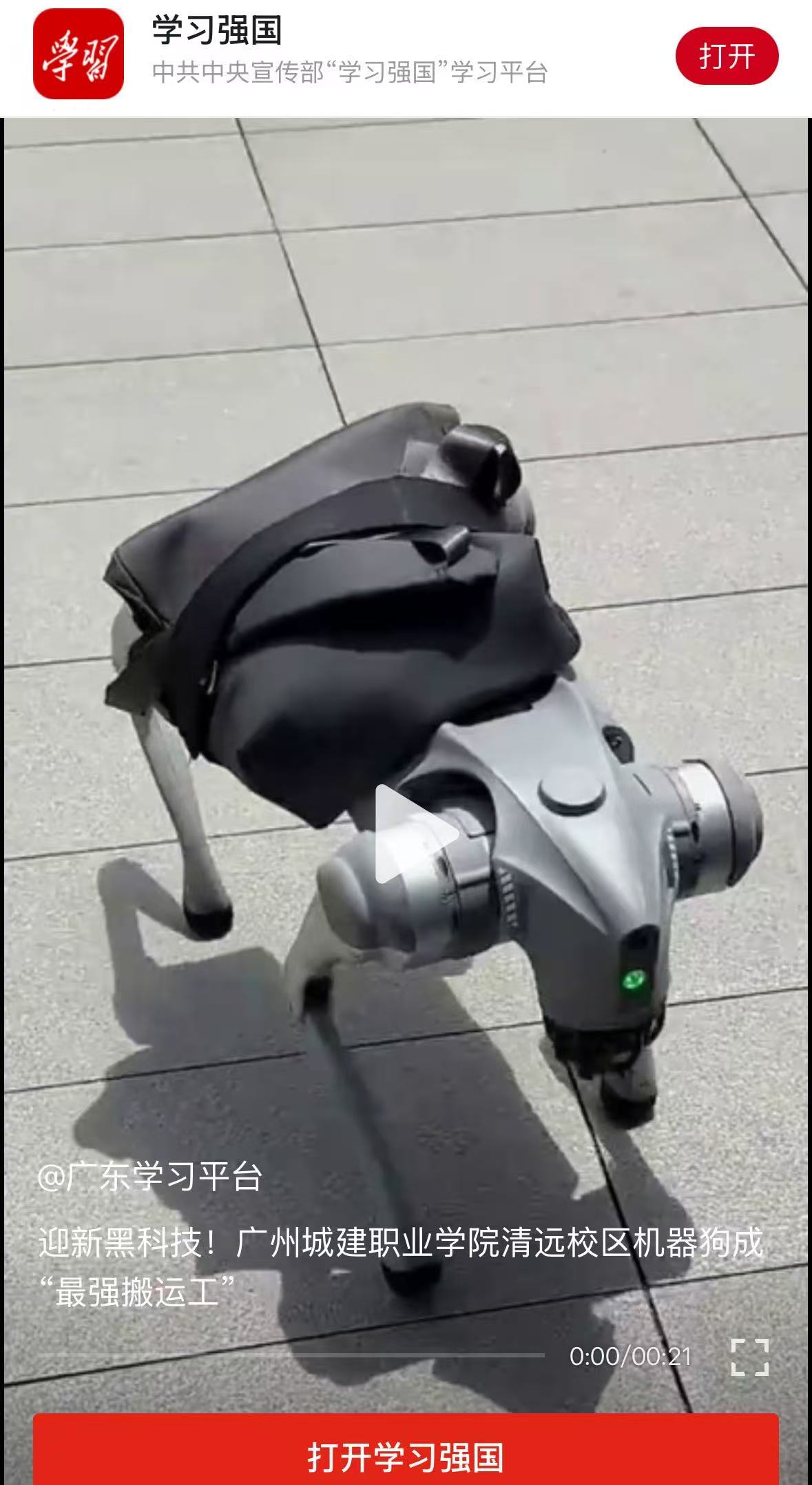 【学习强国】迎新黑科技!伟德国际1946源自英国清远校区机器狗成“最强搬运工”