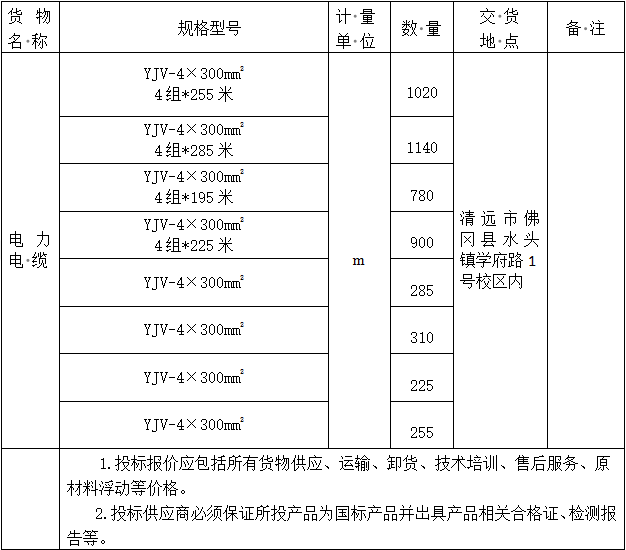 一、项目名称:清远校区电力电缆采购项目