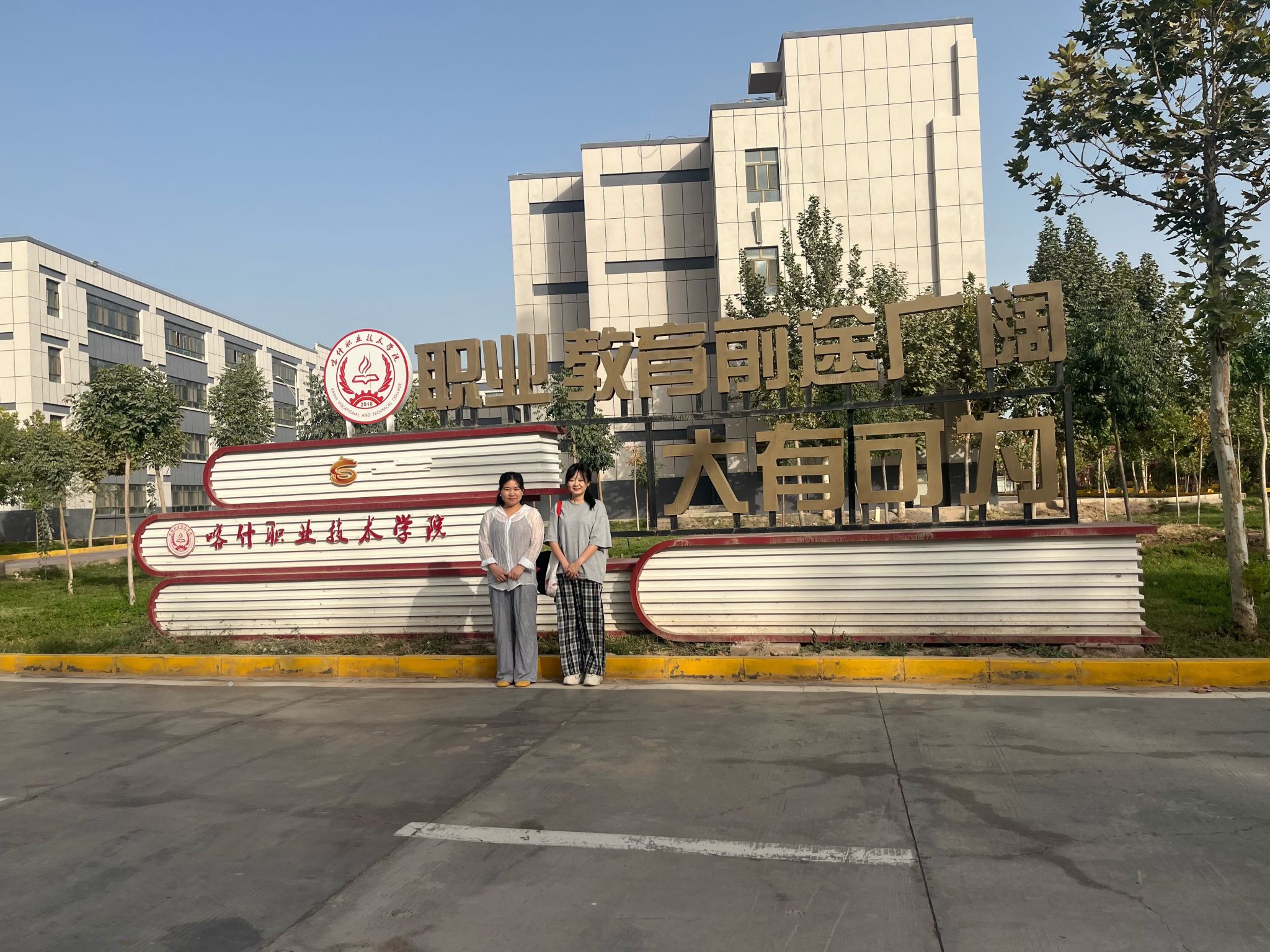 △袁燕、罗玥娉于喀什职院校门口合影
