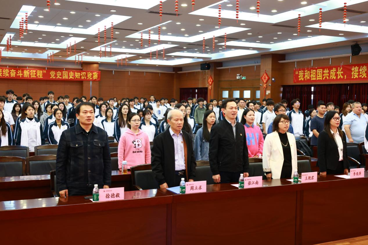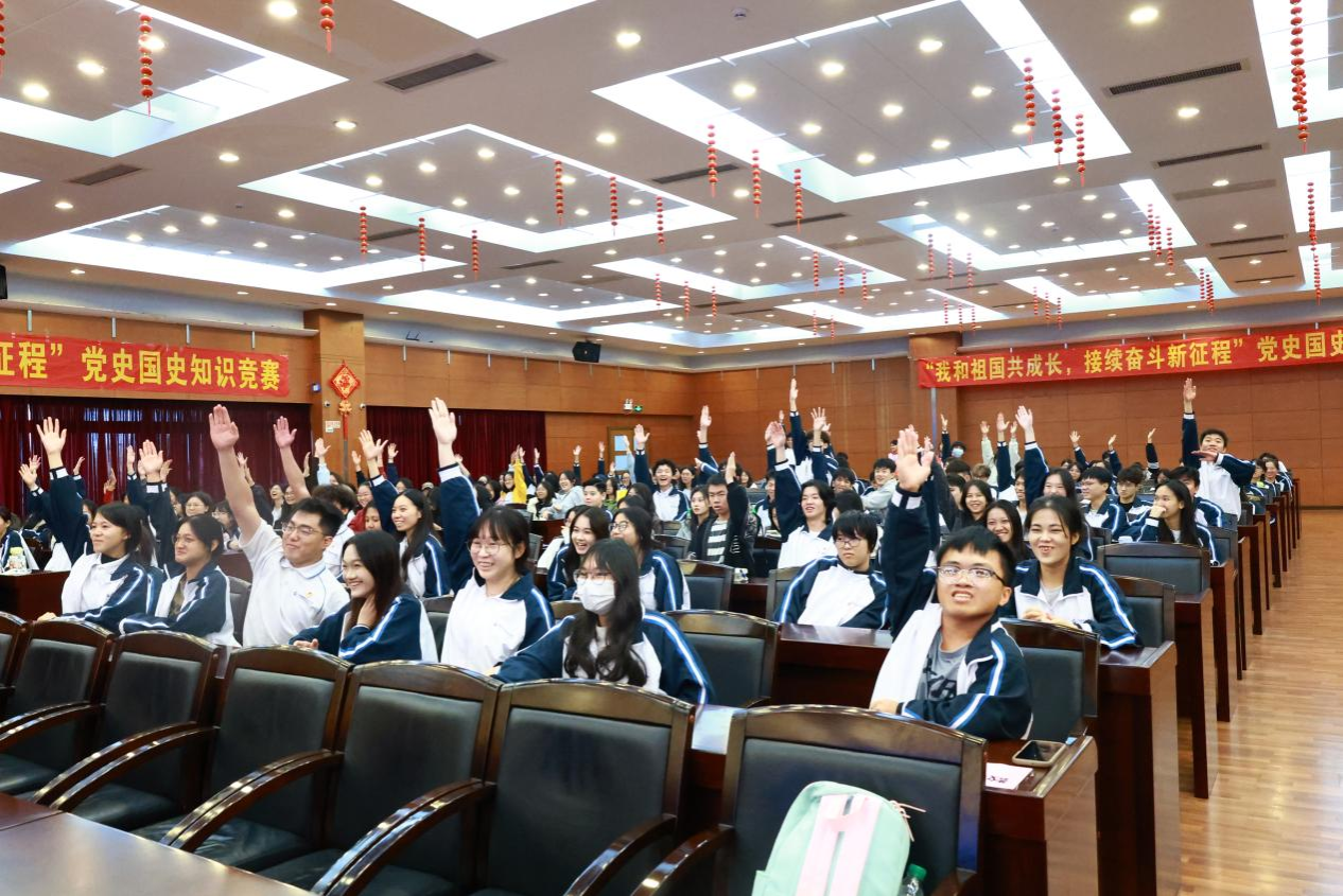 12月5日下午,由学校党委主办、机电工程学院党委承办的“我和祖国共成长,接续奋斗新征程”党史国史知识竞赛在广州校区人文艺术楼四楼报告厅举行。学校党委副书记、纪委书记张江南,学校党委委员、宣传部部长王艳君,机电工程学院党委书记、院长周立求,机电工程学院党委副书记、副院长李奕萍,艺术与设计学院党委副书记、副院长徐德毅,以及学校党委组织部和各二级学院师生代表出席本次活动。