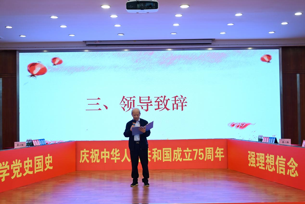 周立求致辞,他鼓励选手赛出风采、赛出深度,让红色基因代代传承,希望通过这次活动,全体师生能够更加深刻地认识到学习党史国史的重要性,更加坚定自己的理想信念,把个人的成长与祖国的未来紧密相连,把实现自身价值融入到中华民族伟大复兴的壮丽征程中。