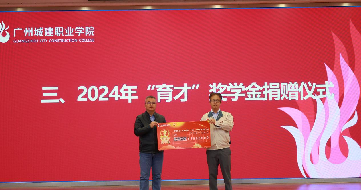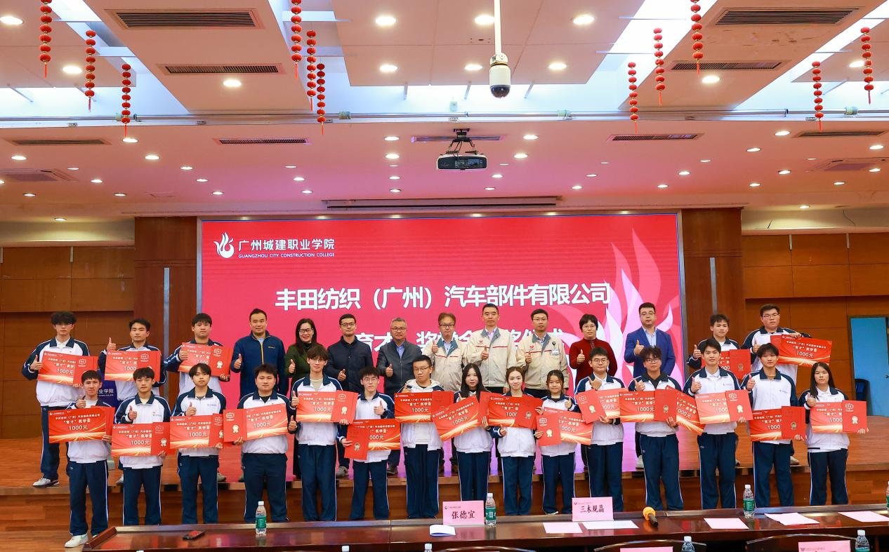 丰田纺织(广州)汽车部件有限公司制造部陈涌涛部长宣读“育才”奖学金获奖名单。与会领导为获奖者颁奖。