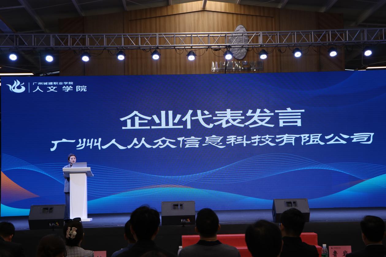 广州人从众信息科技有限公司总监王瑞香和从化生态优质丝苗米产业园农文旅策划运营总监吕承展进行校企合作案例分享发言,介绍了与人文学院开展校企合作的成功经验和取得实效。