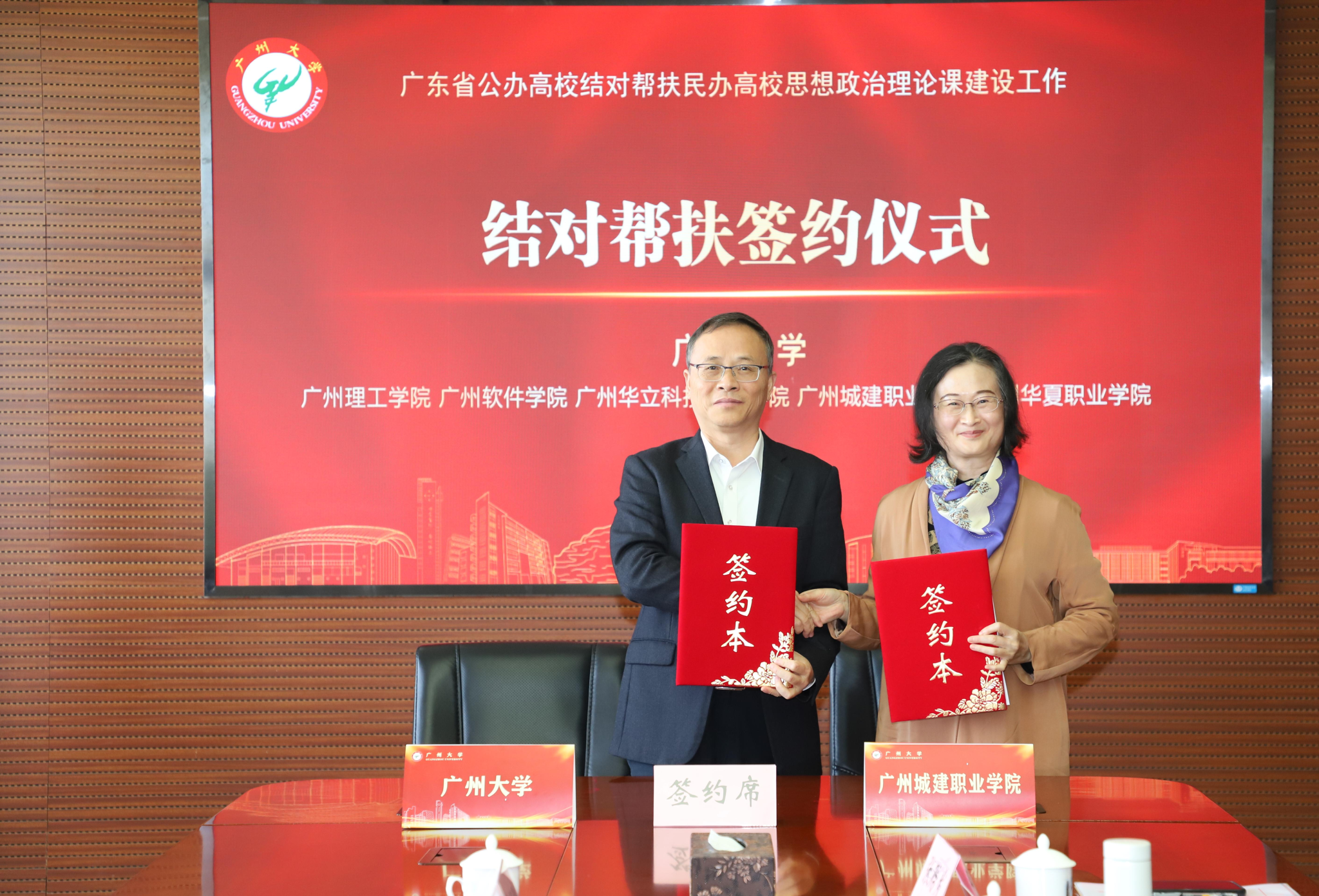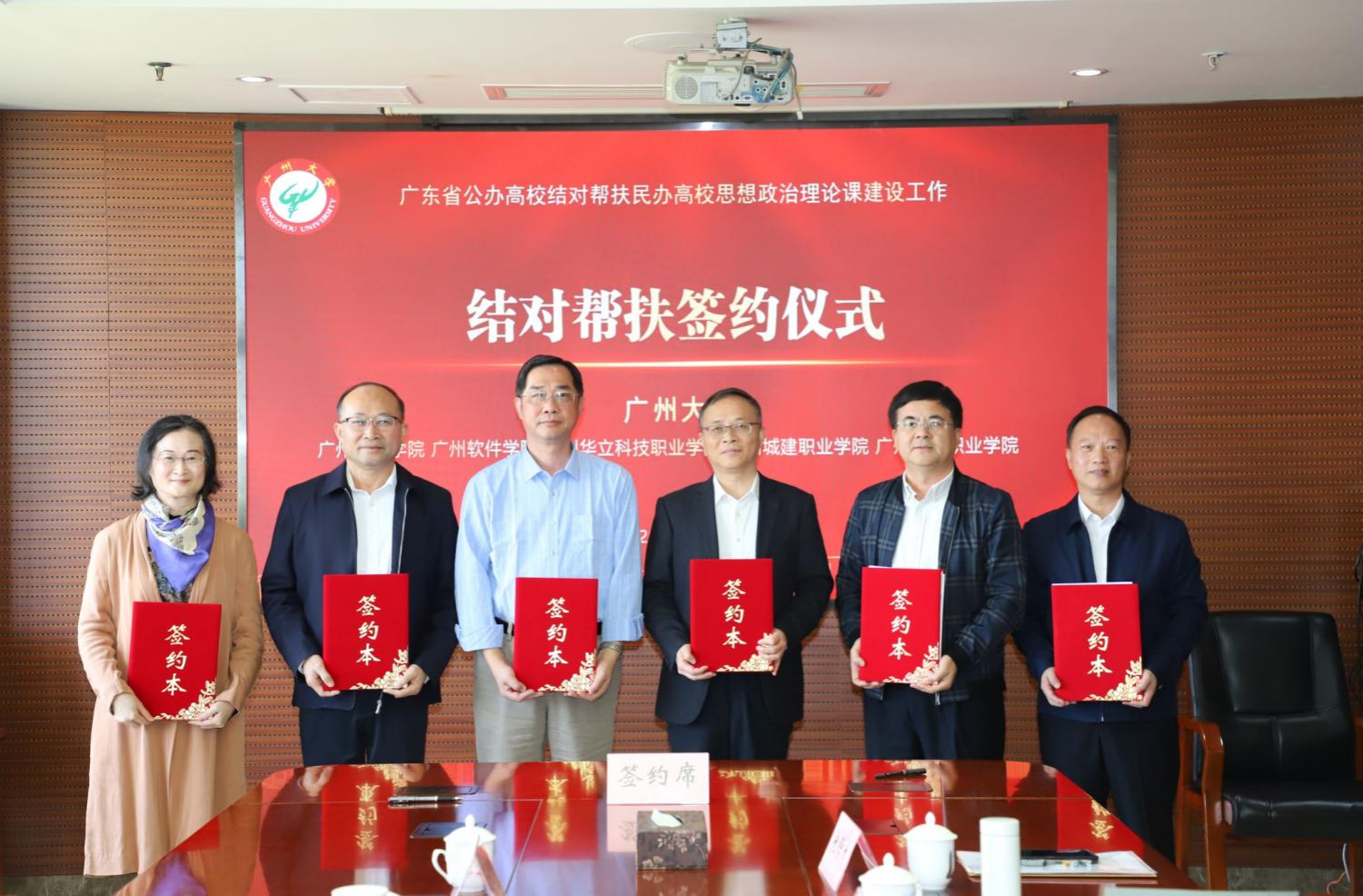 11月21日上午,广州大学结对帮扶五所民办高校思政课建设签约仪式在广州大学城校区行政西楼后座612会议室举行,广州大学党委常委、副校长吴开俊,伟德官网党委书记黄学茭、马克思主义学院党总支书记、副院长宋霞以及结对帮扶的广州理工学院、广州软件学院、广州华立科技职业学院、广州华夏职业学院的党委书记和马克思主义学院负责人出席签约仪式。仪式由广州大学马克思主义学院党委书记罗明星主持。