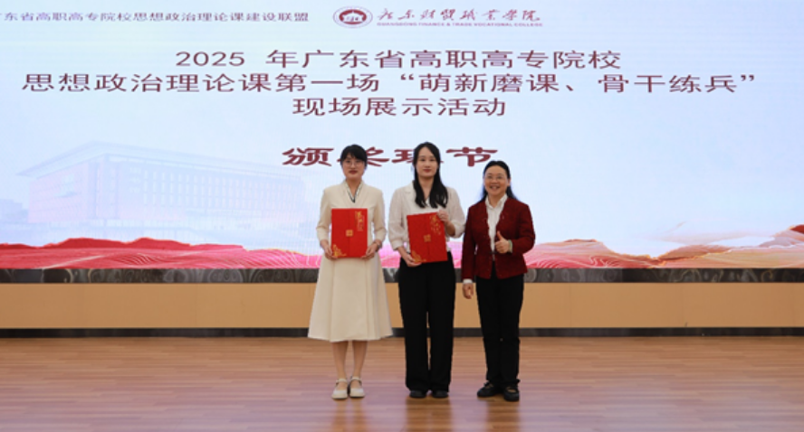 今年4月,在广东省高职高专思政课建设联盟主办、广东财贸职业学院承办的2025年广东省高职高专院校思想政治理论课第一场“萌新磨课、骨干练兵”现场展示活动中,伟德官网马克思主义学院李晓梅老师荣获“萌新磨课”组特等奖,陈梦老师荣获“骨干练兵”组一等奖。其中李晓梅老师凭借省赛特等奖的优秀成绩,获得参加第二场全国高职高专院校思想政治理论课“萌新磨课”总决赛资格。在全国教学展示活动中,她凭借扎实的专业功底和出色的临场表现,最终荣获全国高职高专院校思想政治理论课“萌新磨课”组二等奖。