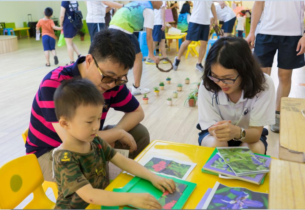 在学校园林专业师生和维肯幼儿园老师的精心准备下,各项游戏有序展开。家长和孩子们热情投入,单腿跳格子、躲闪精灵和毽舞飞扬三个游戏让家长们在孩子的陪伴下重温了童年记忆,而幸运大转盘、快乐指路、植物的套路、植物拼图和“渔”乐无穷等游戏则是孩子在家长们的协助下共同完成。最受欢迎的要数压花书签体验活动,家长和孩子们都认真选取自己喜欢的花材,仔细操作,一起完成一份私人订制的压花书签。在家长的温馨陪伴下,孩子们积极参与,欢声笑语,其乐融融,凭借在游戏中获得的勋章兑换自己心仪的礼物,提前度过了一个快乐的儿童节。