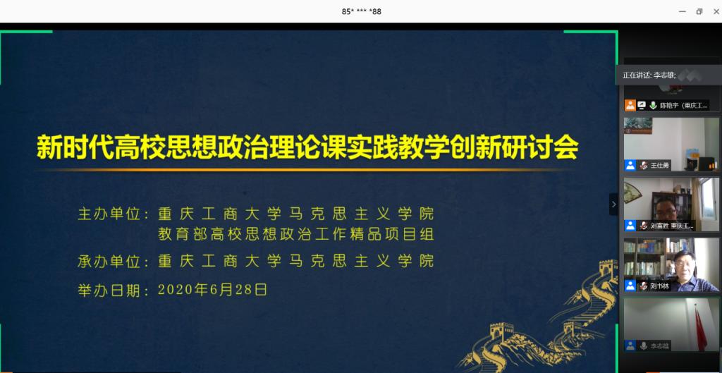 6月28日,由重庆工商大学马克思主义学院、教育部高校思想政治工作精品项目组主办的“新时代高校思想政治理论课实践教学创新研讨会”在腾讯会议平台召开,伟德官网思政部主任谭德礼及全体思政教师参加了本次研讨会。