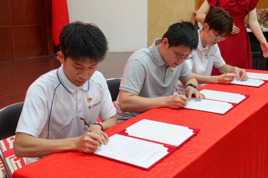 建筑工程学院林怡峰老师、陈志文同学分别作为师生党员代表发言,表达了将全心全意投入学业帮扶工作的决心和信心。接着,师生党员、帮扶对象代表共同签署了《学业帮扶约定书》,这份约定书满满承载着建筑工程学院全体党员的使命感和责任感。