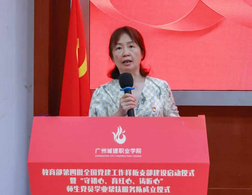 会上,建筑工程学院学生第三党支部书记吴晓君汇报了教育部第四批全国党建工作样板支部培育创建情况。吴承霞对《师生党员学业帮扶实施方案》进行了详细解读,她表示,全体师生党员要立足实际,积极发挥先锋模范作用,以“守初心、育红心、铸匠心”为育人模式,助力学业困难学生全面发展。