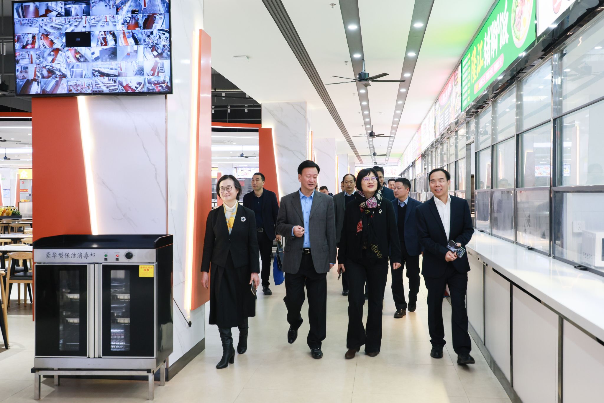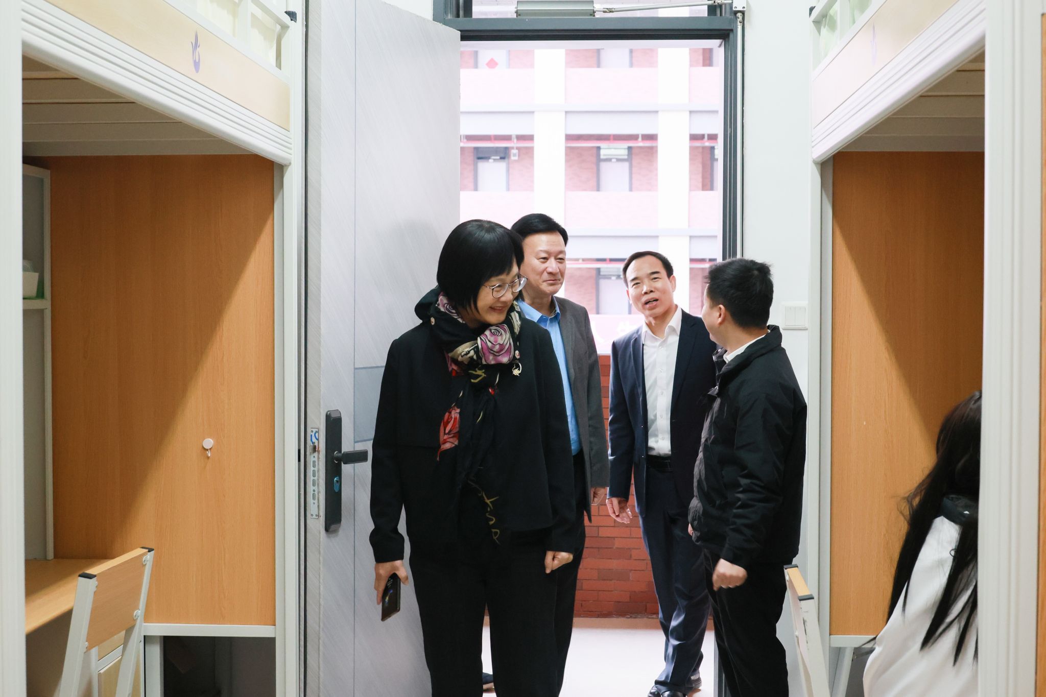 会前,吴艳玲一行在张亚斌、黄学茭、李国年等陪同下,现场走访调研了实训室、学生心理咨询中心、学生宿舍、教师公寓、食堂等地,深入考察了学校新校区校园环境、教学条件和师生生活条件等情况。学校正式入驻新校区半年以来,办学条件和校园环境不断得到改善、优化,为师生创造了良好的学习、生活、工作环境。