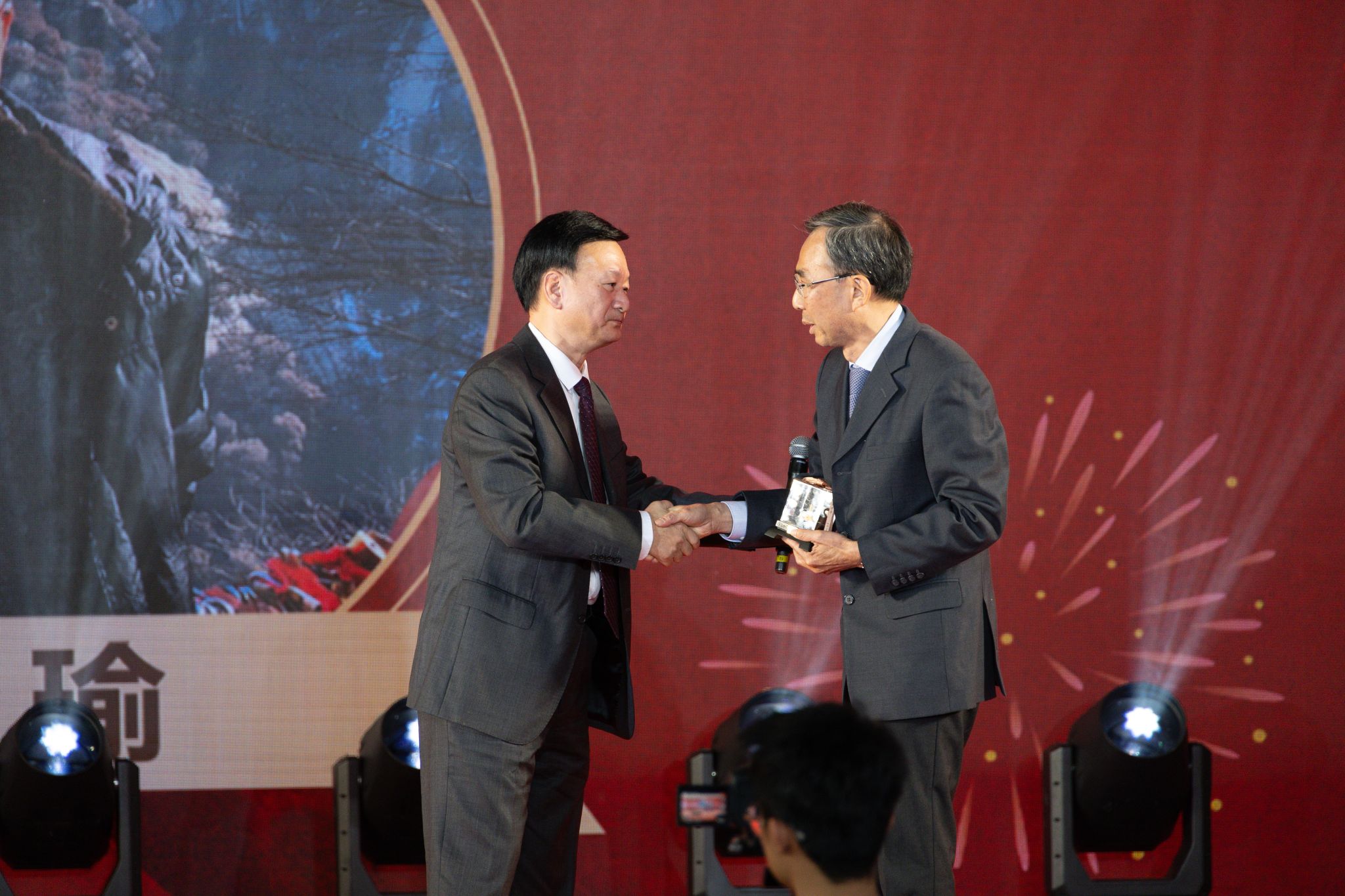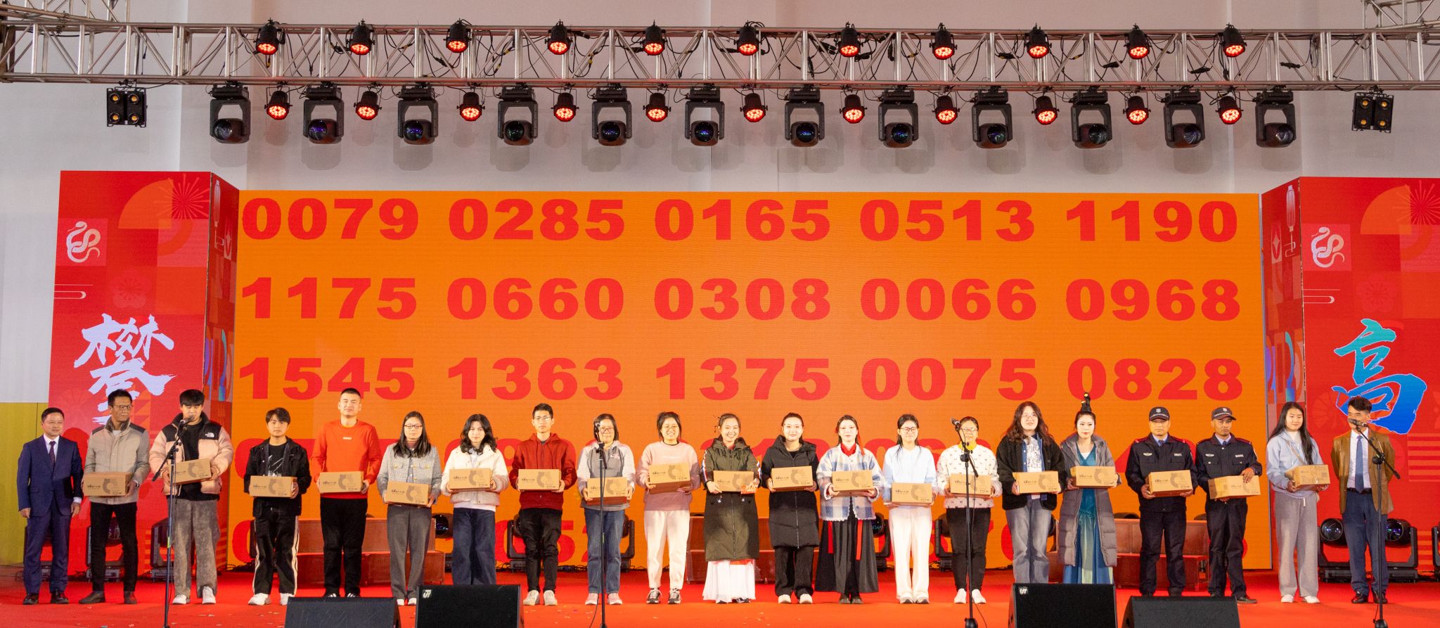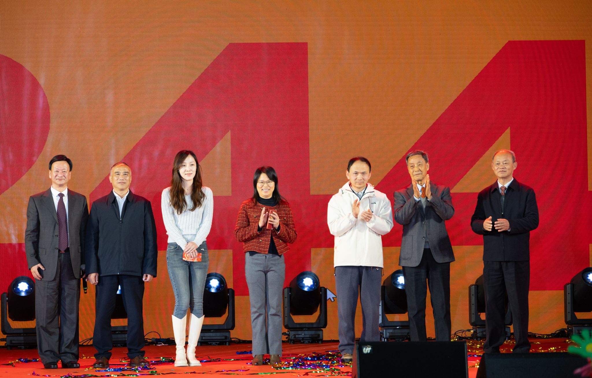 张亚斌为在2024年作出突出贡献和特别贡献的优秀教职工们颁发了纪念品,并和张富良、刘国生、蒋新华等老校长一起为全场观众抽出“金条特别奖”。