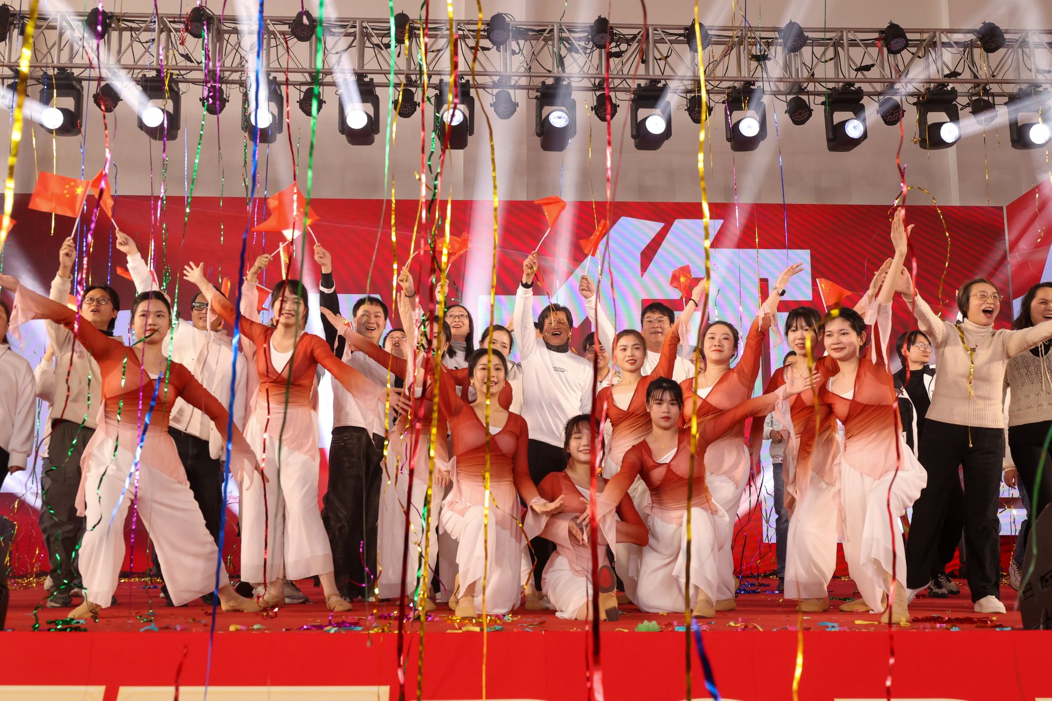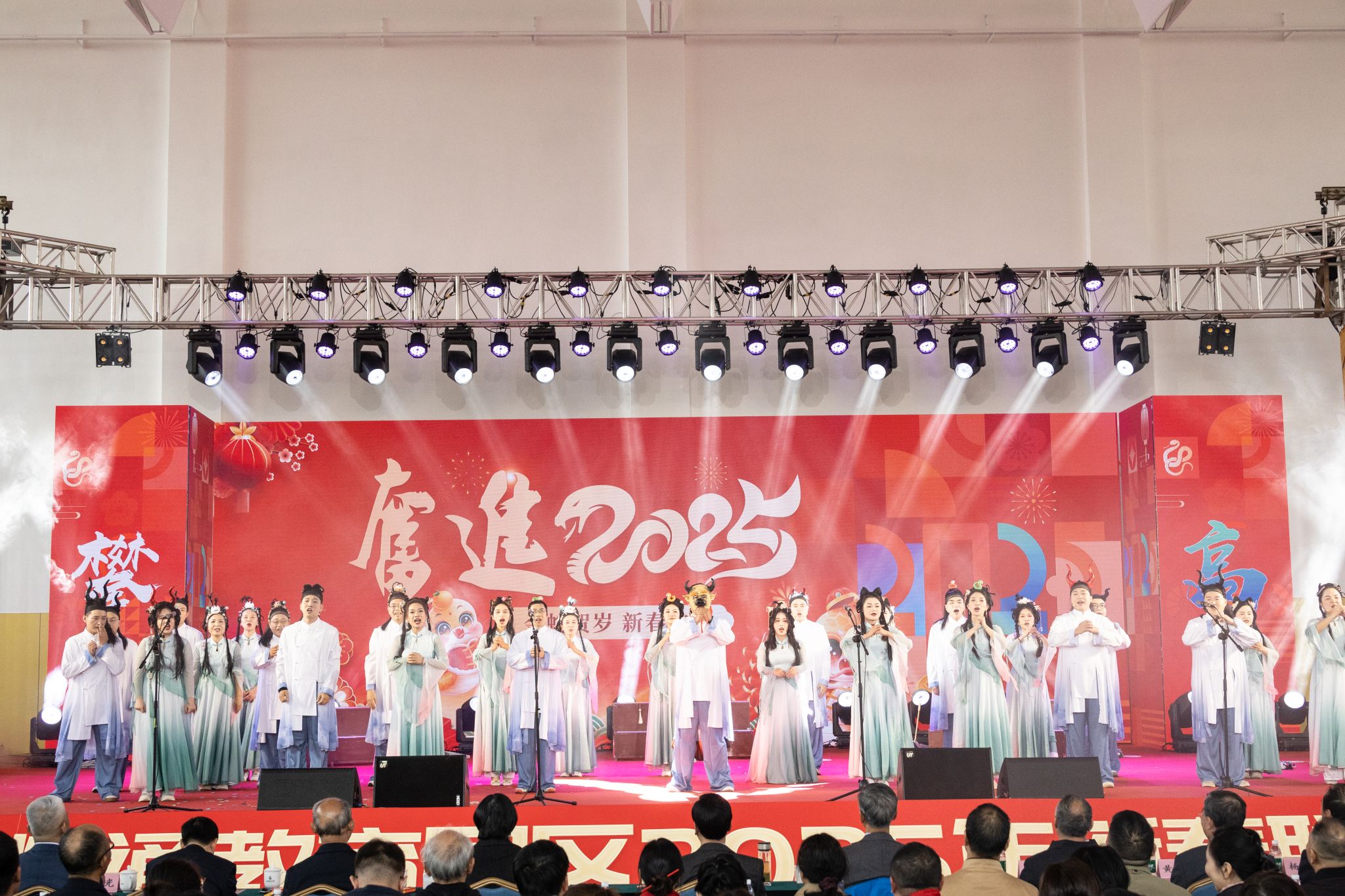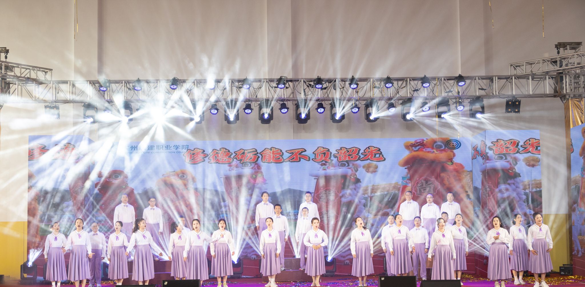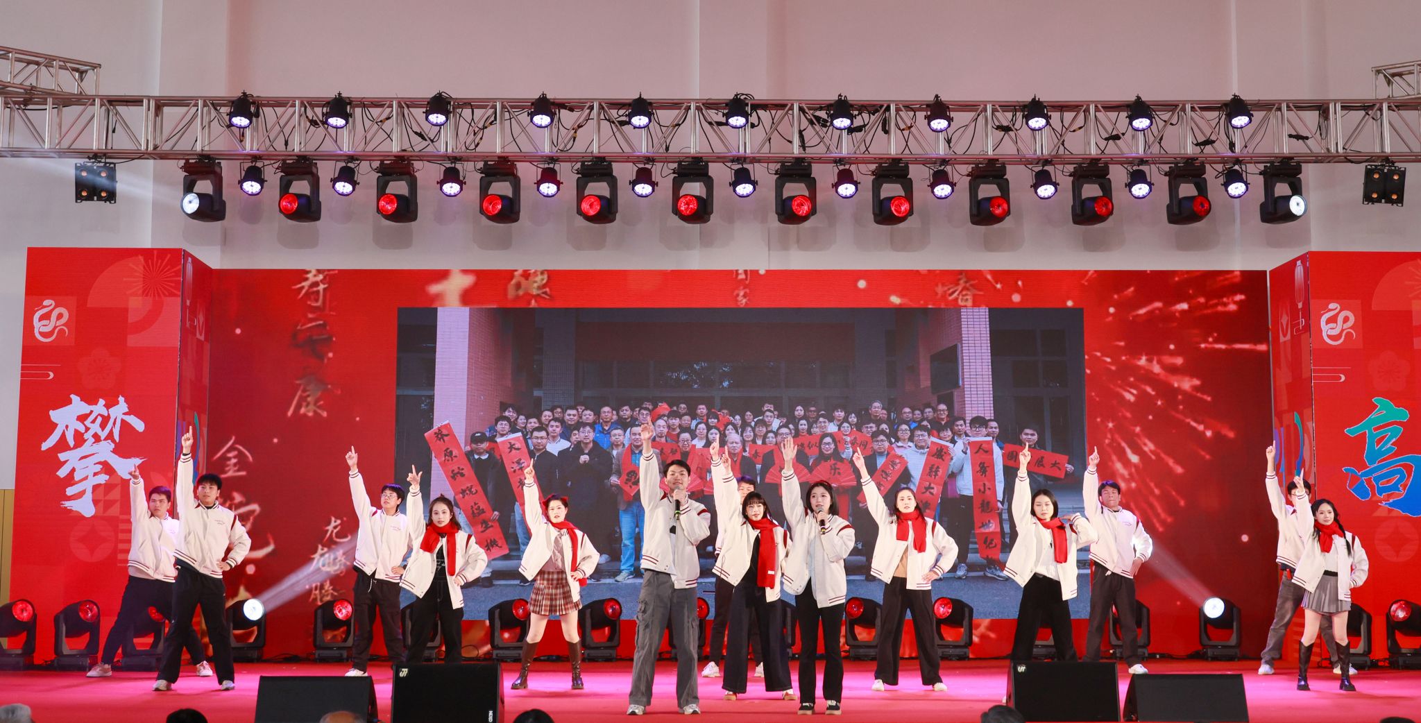 在现场,人文学院带来开场舞《盛世欢歌》,充满足足春意和新年气息;体育与健康学院的舞蹈节目《旗开得胜》,将美好的新年祝福送给了在场的每一位观众;机电工程学院带来的歌舞《齿轮舞动,新年乐章》,编织出新年的美好愿景;建筑工程学院表演的《筑梦未来》,展现了城建人积极向上的精神风貌;维肯中英文幼儿园的小朋友们精彩演绎配音秀《Try Everything》,现场充满欢声笑语;经济与管理学院带来的快板秀《经管新韵,快板迎春》,手中快板哒哒响,新春愿景说一说;教职工文体协会合唱团倾情演绎的《青城山下》,用动人的歌声将吉祥好运带给大家;医药卫生学院和未来技术学院携手带来《教师阵线联盟》梦幻联动,碰撞出属于城建教师的青春律动;信息工程学院的舞蹈《春山明月》,带我们领略那山川之美、月色之柔;轨道交通学院深情演唱《因为是老师》,歌声响起,感受深沉而真挚的师生情谊;数字商贸学院带来的舞蹈《金蛇鼓舞》,身姿矫健,步伐灵动充满力量与美感;马克思主义学院表演歌伴舞《祝福祖国》,在歌声与舞姿中表达对伟大祖国的美好祝愿;广州城建技工学校带来的《追逐光芒——大国工匠》,以智慧作笔,以关爱为墨,勾勒出学校与学生共同成长的宏伟蓝图;培训学院的小品《千年才一回》,用非凡的创造力;营造出欢乐的新春氛围;精通公司带来的三句半《奋进创佳绩》,讲述奋进路上的感人故事,艺术与设计学院以一曲《我AI你中国》,告白祖国,诉说对学校未来发展的美好憧憬。