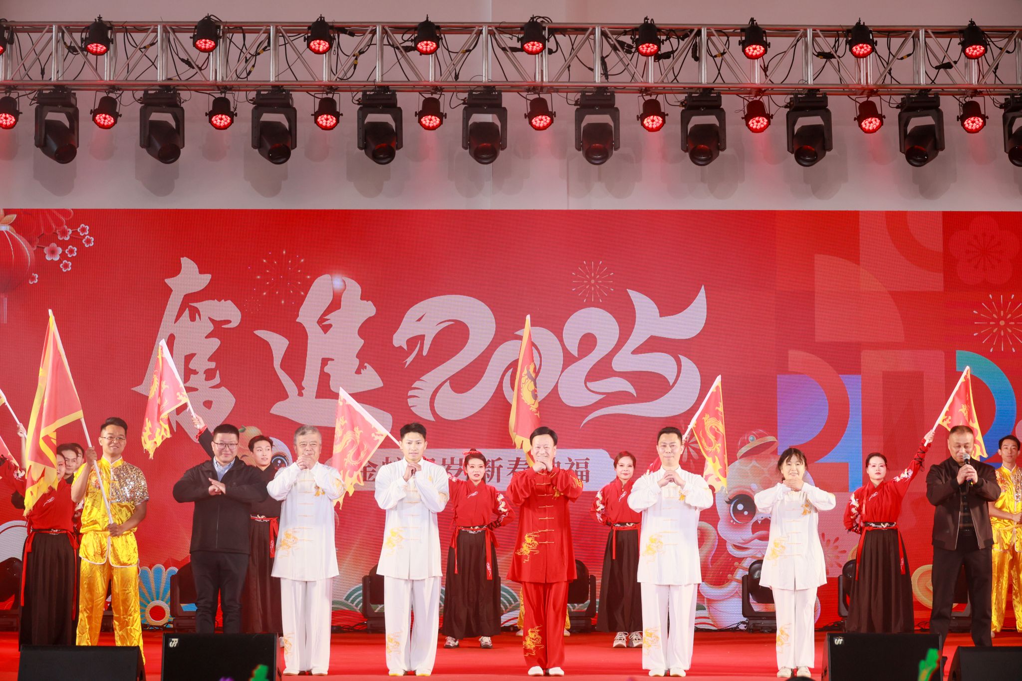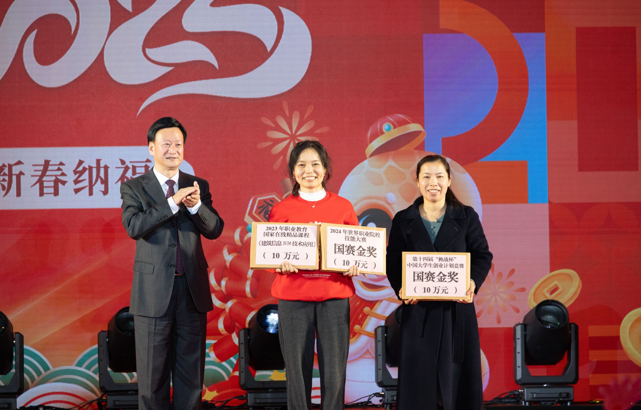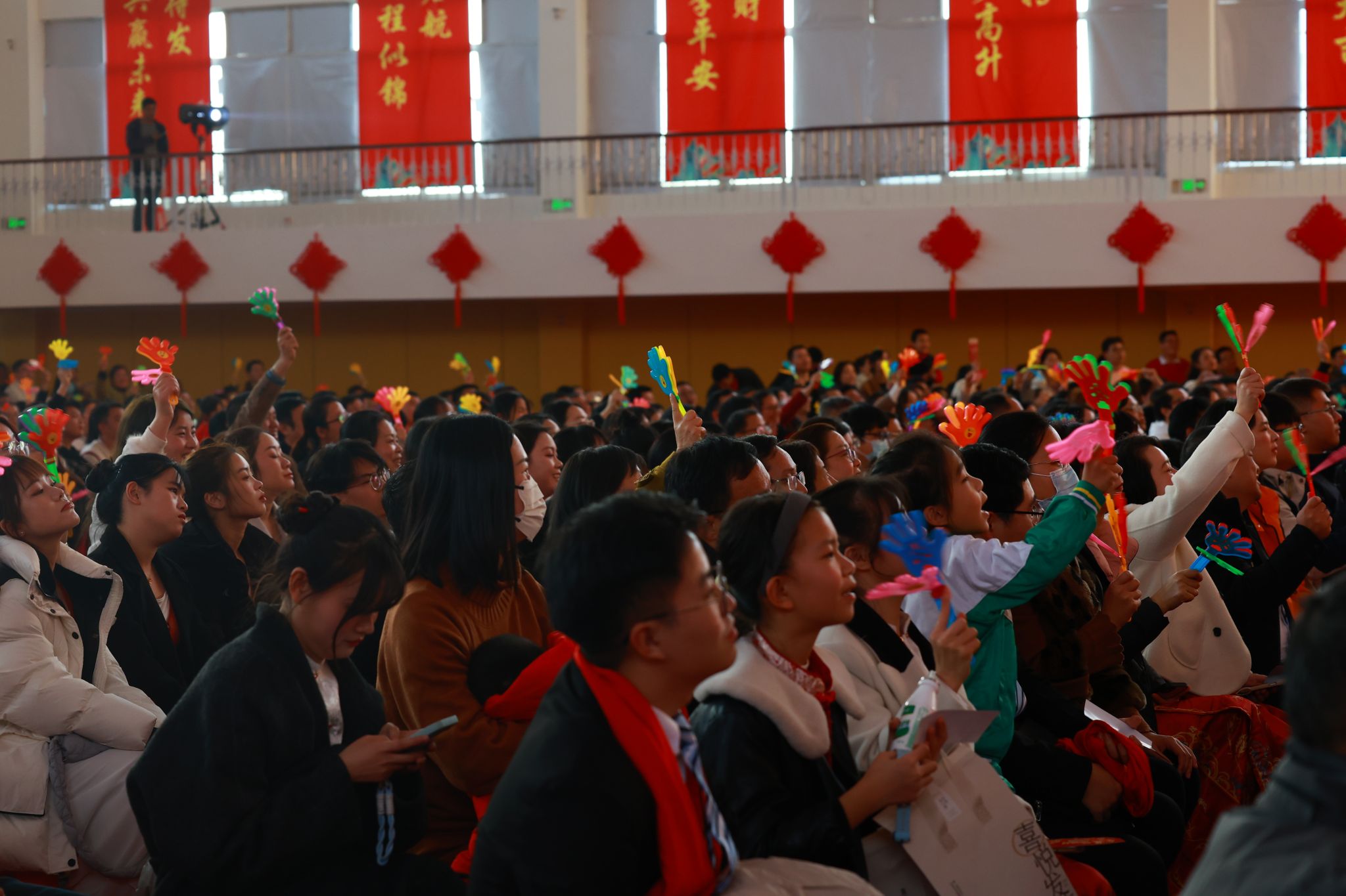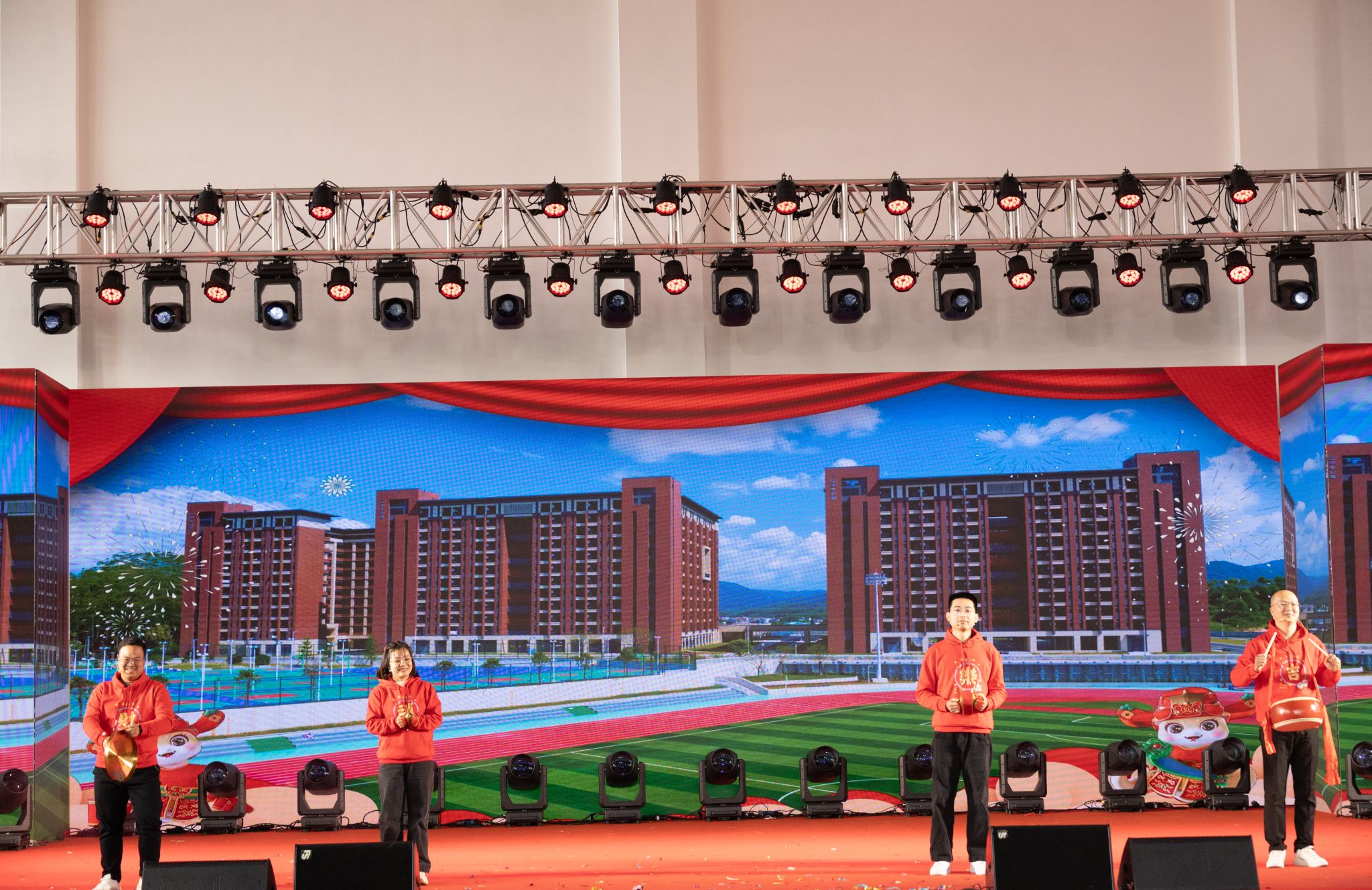 在现场,人文学院带来开场舞《盛世欢歌》,充满足足春意和新年气息;体育与健康学院的舞蹈节目《旗开得胜》,将美好的新年祝福送给了在场的每一位观众;机电工程学院带来的歌舞《齿轮舞动,新年乐章》,编织出新年的美好愿景;建筑工程学院表演的《筑梦未来》,展现了城建人积极向上的精神风貌;维肯中英文幼儿园的小朋友们精彩演绎配音秀《Try Everything》,现场充满欢声笑语;经济与管理学院带来的快板秀《经管新韵,快板迎春》,手中快板哒哒响,新春愿景说一说;教职工文体协会合唱团倾情演绎的《青城山下》,用动人的歌声将吉祥好运带给大家;医药卫生学院和未来技术学院携手带来《教师阵线联盟》梦幻联动,碰撞出属于城建教师的青春律动;信息工程学院的舞蹈《春山明月》,带我们领略那山川之美、月色之柔;轨道交通学院深情演唱《因为是老师》,歌声响起,感受深沉而真挚的师生情谊;数字商贸学院带来的舞蹈《金蛇鼓舞》,身姿矫健,步伐灵动充满力量与美感;马克思主义学院表演歌伴舞《祝福祖国》,在歌声与舞姿中表达对伟大祖国的美好祝愿;广州城建技工学校带来的《追逐光芒——大国工匠》,以智慧作笔,以关爱为墨,勾勒出学校与学生共同成长的宏伟蓝图;培训学院的小品《千年才一回》,用非凡的创造力;营造出欢乐的新春氛围;精通公司带来的三句半《奋进创佳绩》,讲述奋进路上的感人故事,艺术与设计学院以一曲《我AI你中国》,告白祖国,诉说对学校未来发展的美好憧憬。