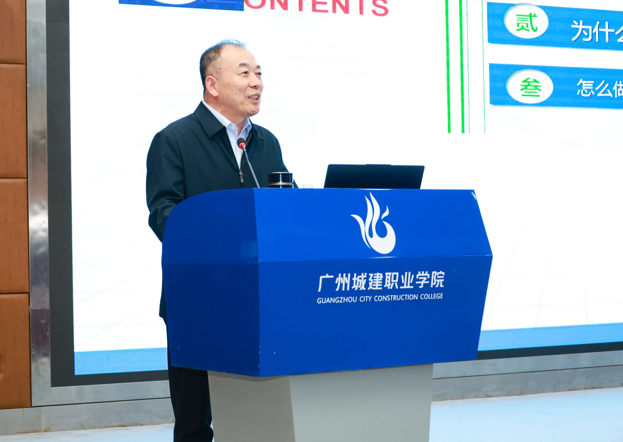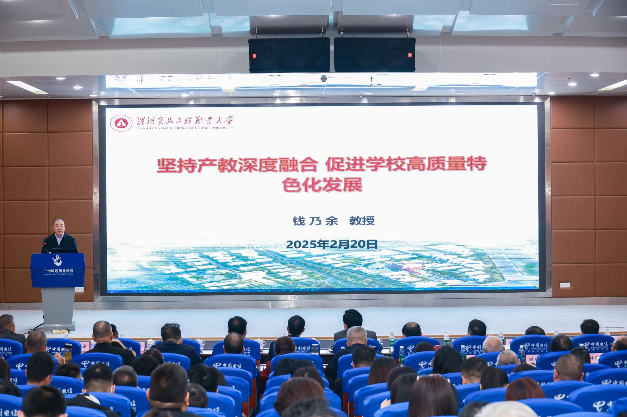 钱乃余系统介绍了《坚持产教深度融合,促进学校高质量特色化发展》,他以漯河食品工程职业大学为实践案例,深入讲解了如何以高质量发展为主线,聚力产教融合,强化学校内涵建设,为学校“升格职业本科”发展提供了十分有益的经验、启示和专业性指导。