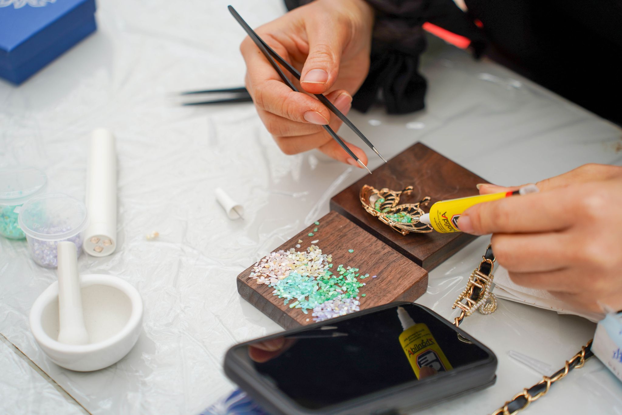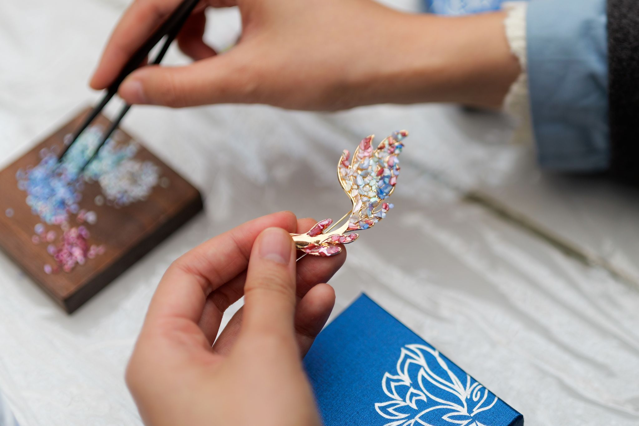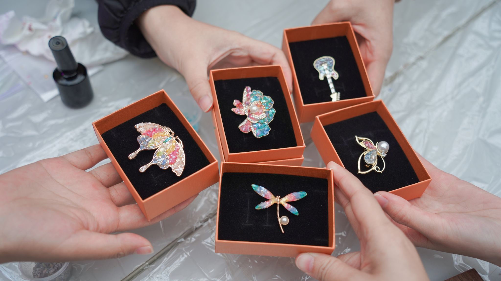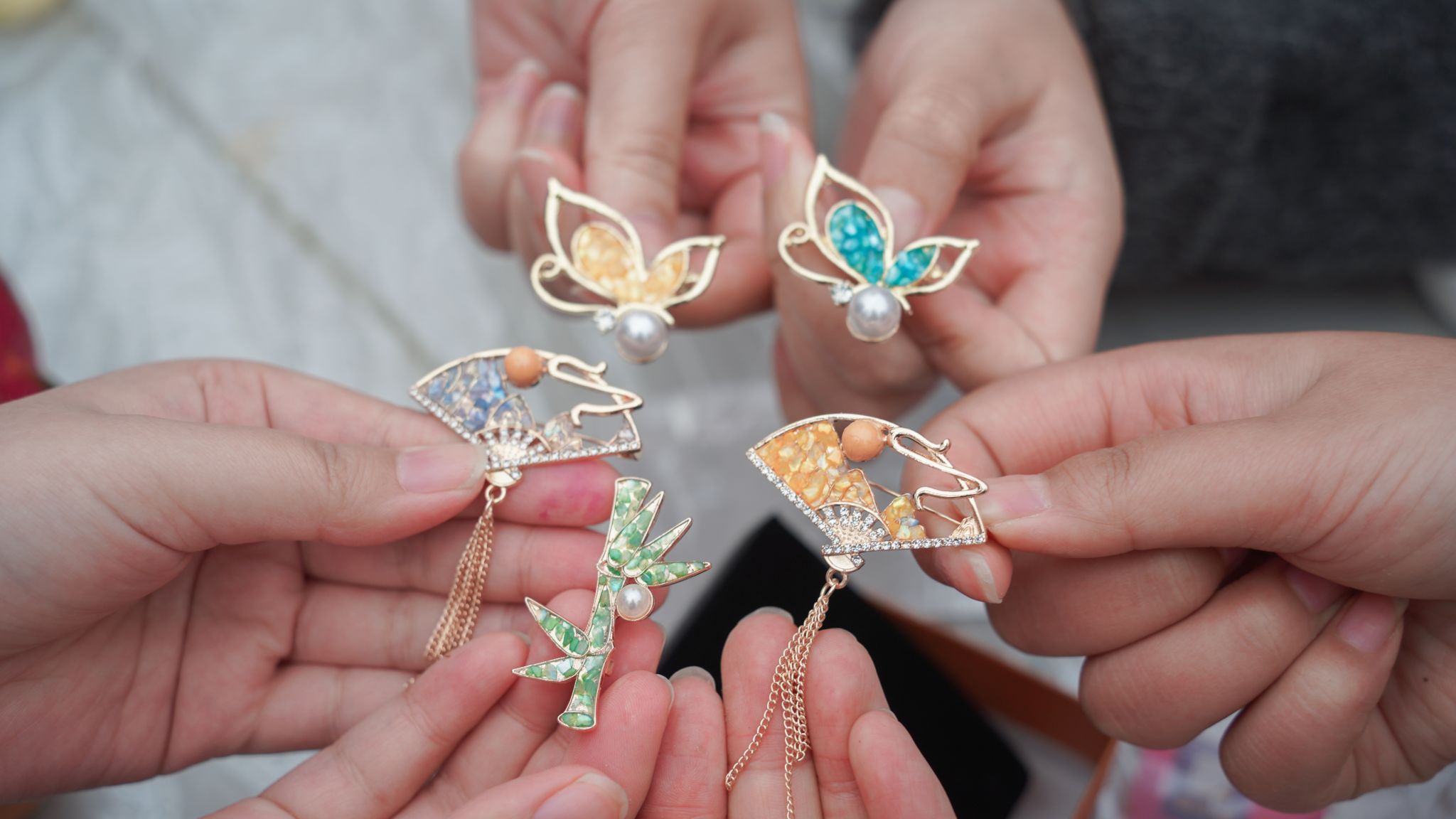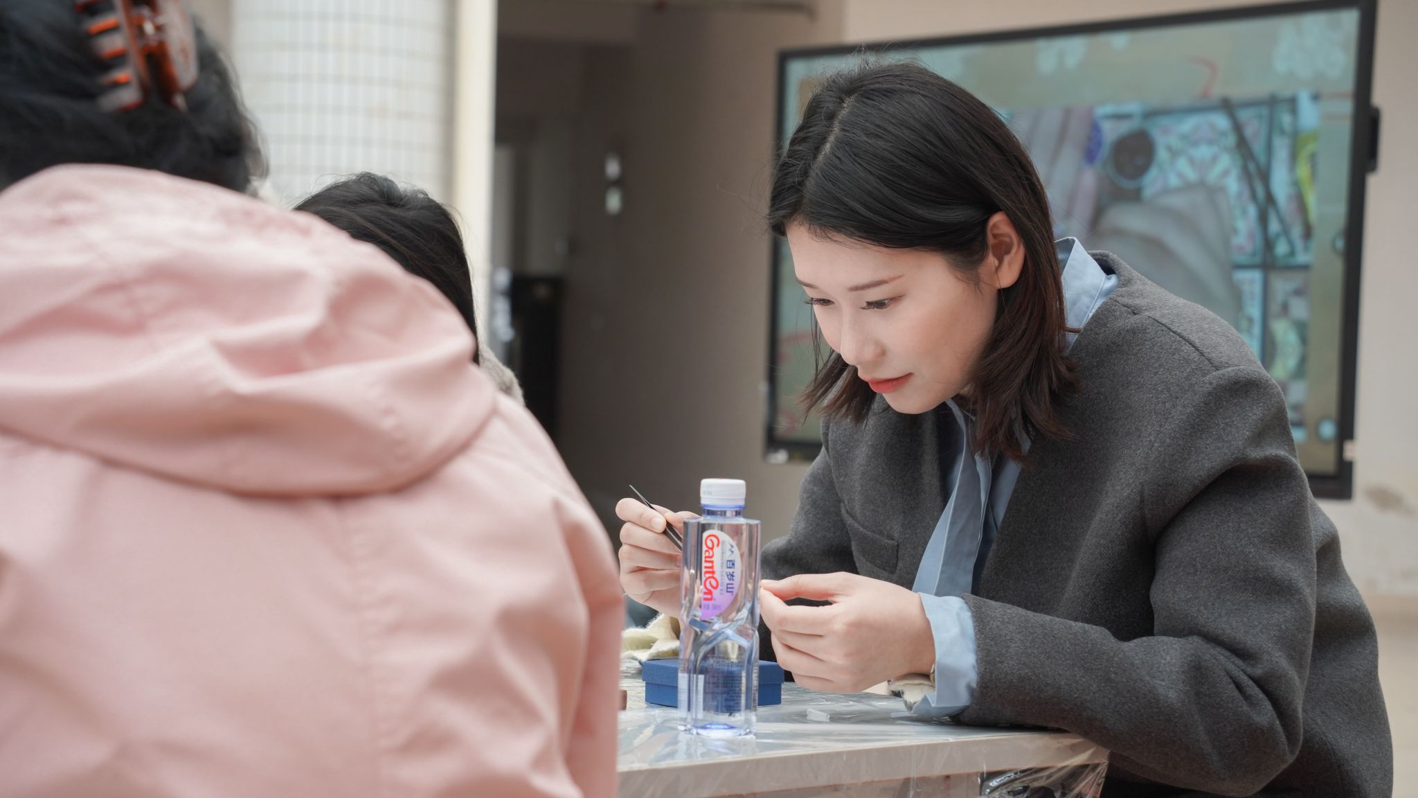 活动现场,在专业老师的指导下,大家全身心的投入创作,作品涵盖花卉、山水、现代等多元风格,现场气氛热烈。经过一个多小时的专注创作,女教职工们将传统螺钿工艺与现代审美结合,创作出兼具古典韵味与时尚创意且独一无二的胸针作品。
