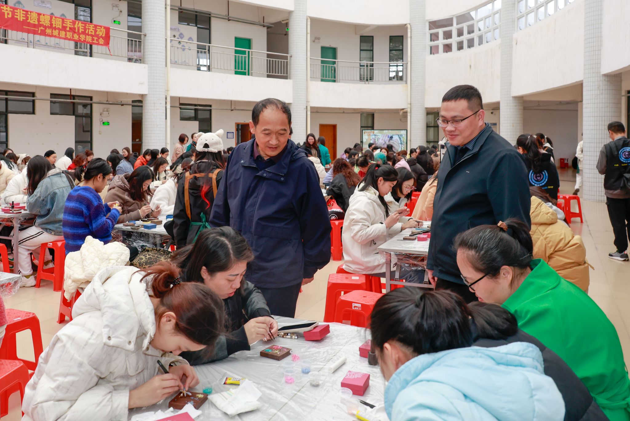 3月6日下午,为庆祝第115个“三八”国际劳动妇女节,传承中华优秀传统文化,丰富女教职工文化生活,展现新时代女性风采,学校工会在广州校区二区饭堂4楼成功举办“巧手生花·绽放非遗之美”——三八节非遗螺钿胸针制作活动。全校300余名女教职工参加活动,学校工会主席杨清国、副主席吴辉军来到活动现场看望在场女教职工,并向女教职工送上节日的问候。
