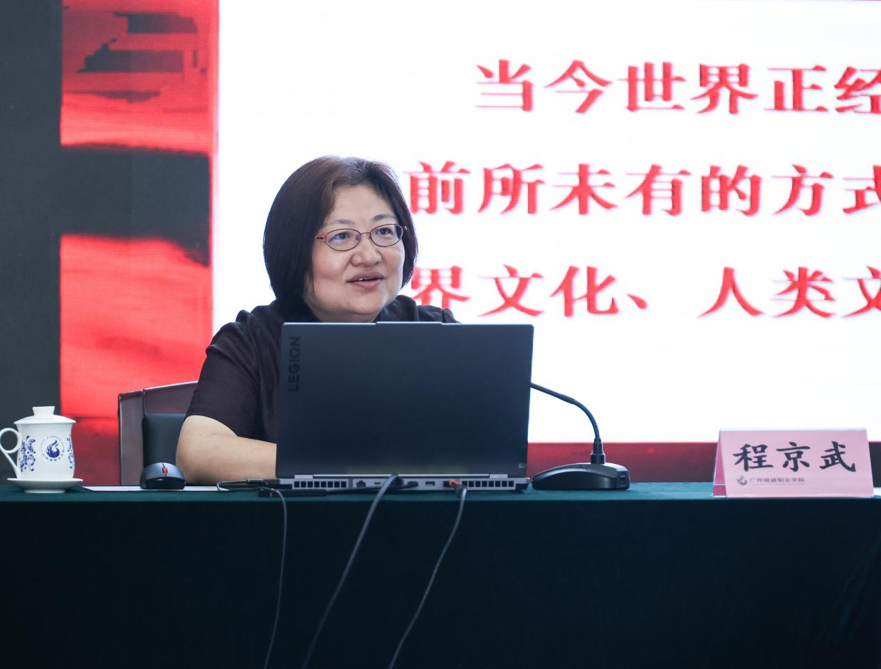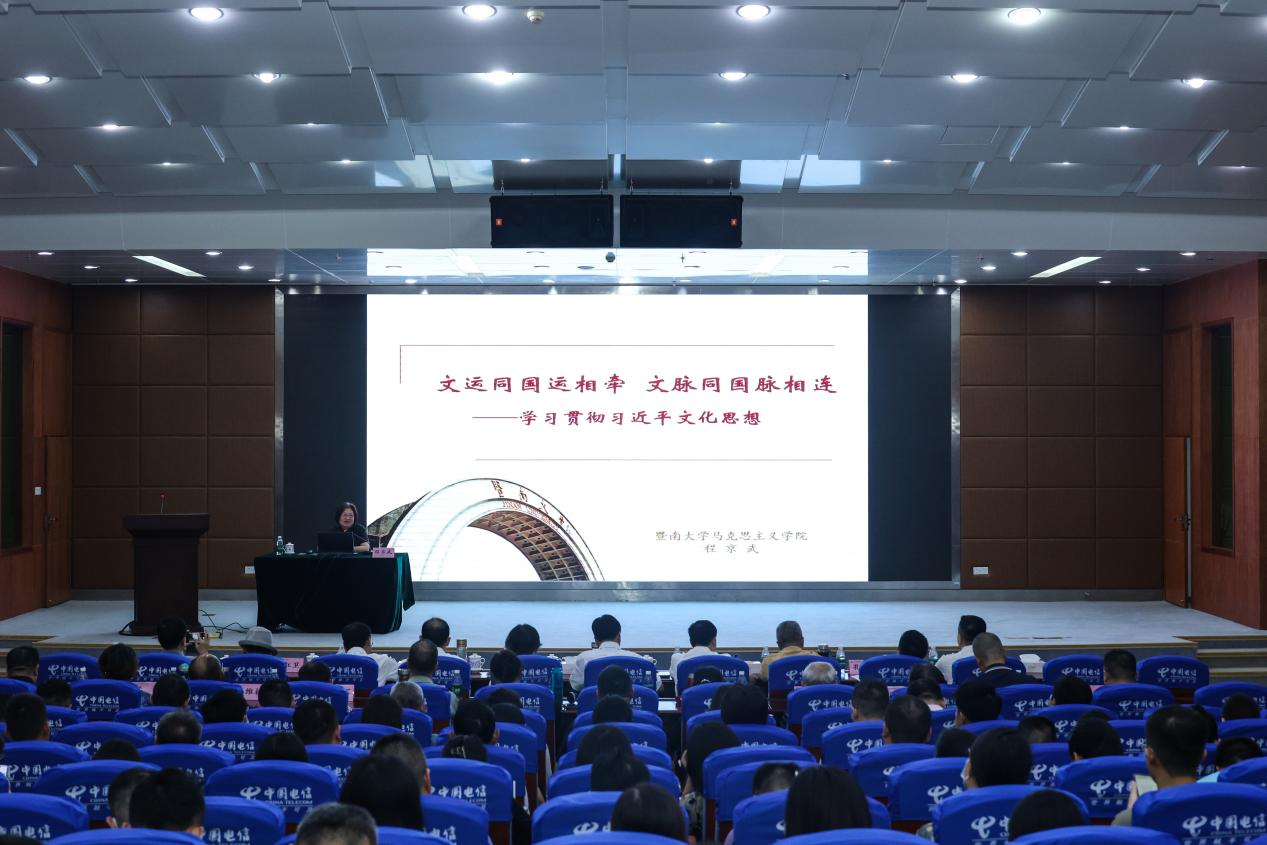 程京武教授以《文运同国运相牵文脉同国脉相连——学习贯彻习近平文化思想》为题,开展一场兼具理论深度与实践温度的学术报告。她从习近平文化思想的提出背景、源流探溯、丰富内涵等3个方面,结合实际案例,以扎实的学术功底和生动的阐释方式,进行了全面系统、深入浅出的讲授,具有高度的政策理论性和很强的实践指导性。