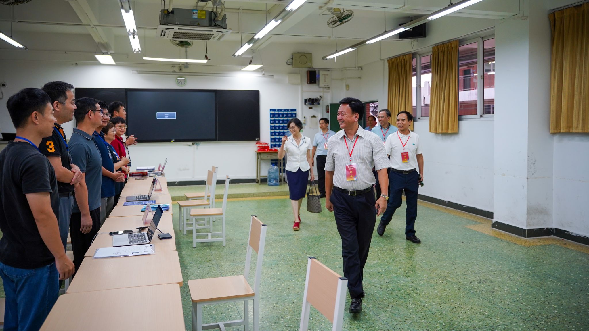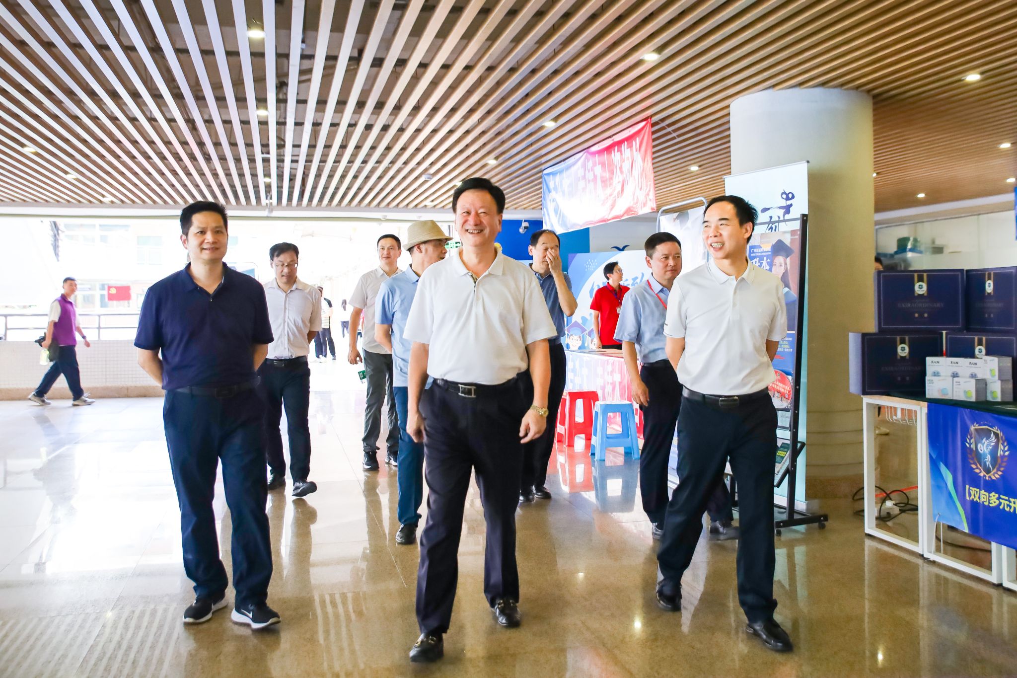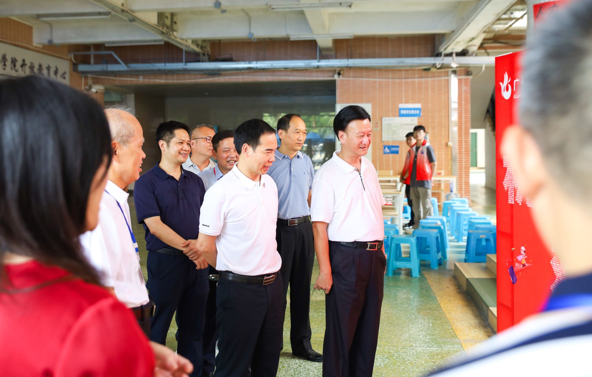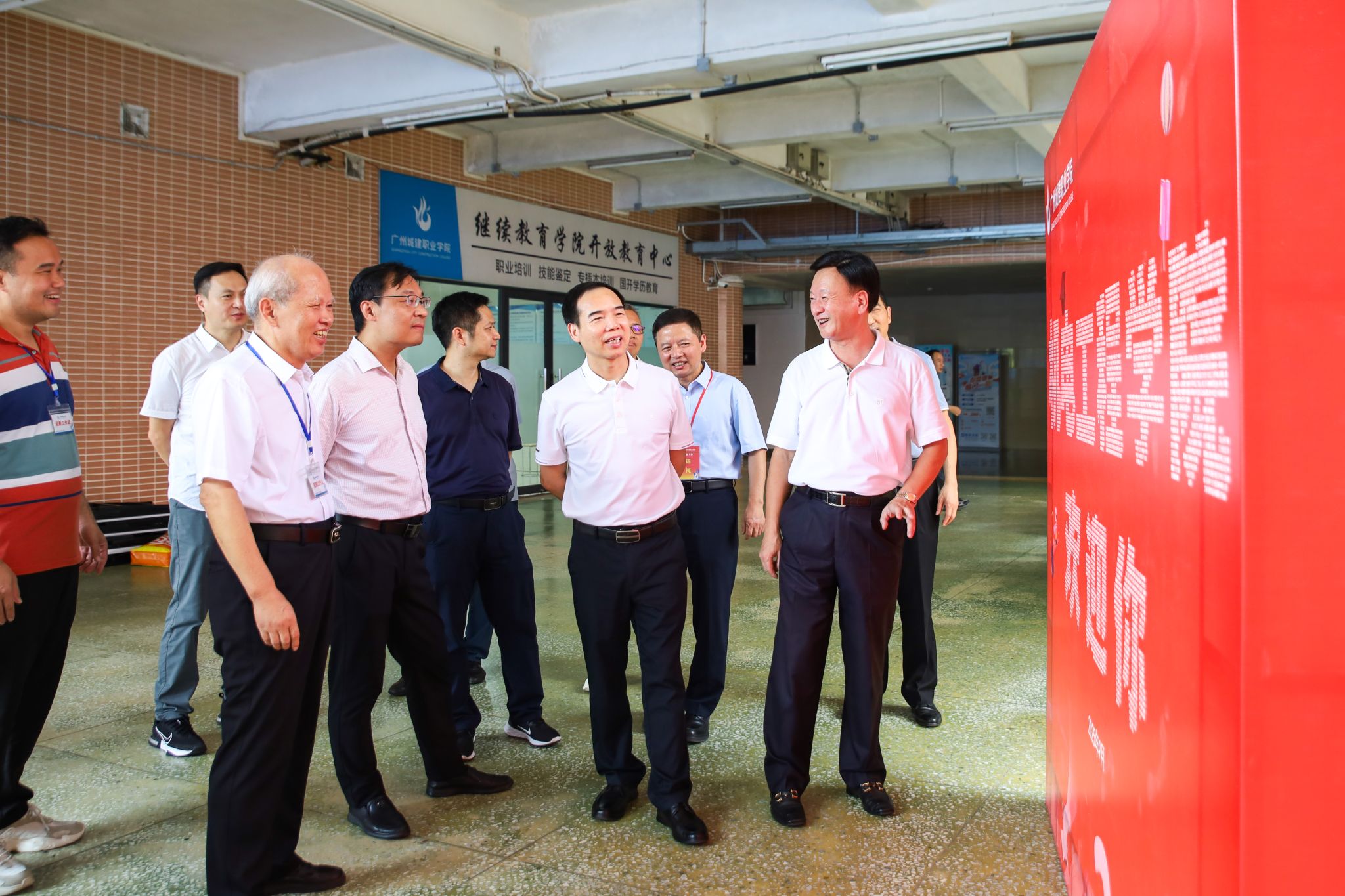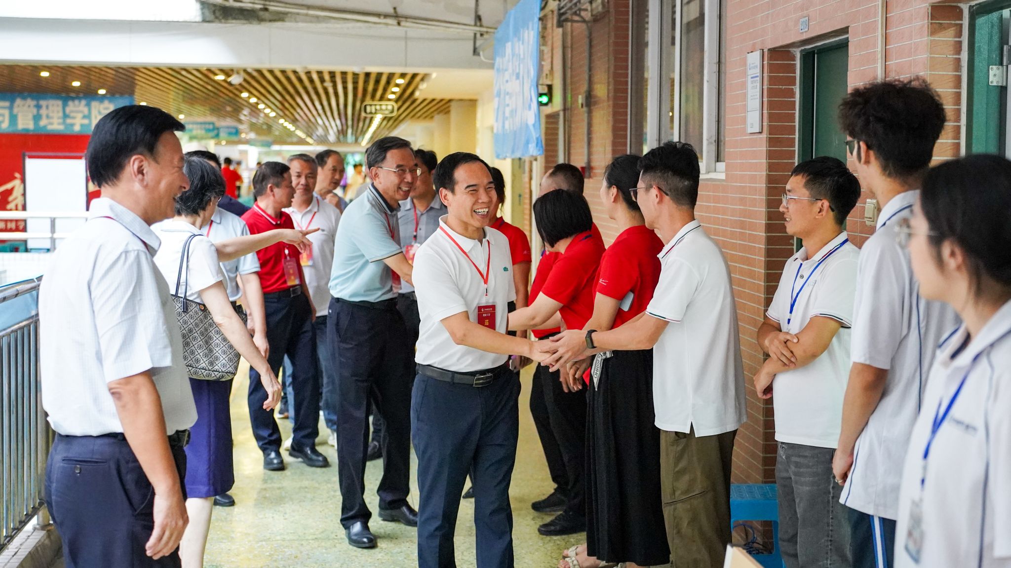 随着广州校区迎新工作进入尾声,学校董事会执行董事、校务管理委员会主任张亚斌,党委书记黄学茭、校长李国年等全体校领导来到迎新点,慰问参与迎新工作的老师和同学们,对辛勤忙碌的工作人员表示衷心感谢。