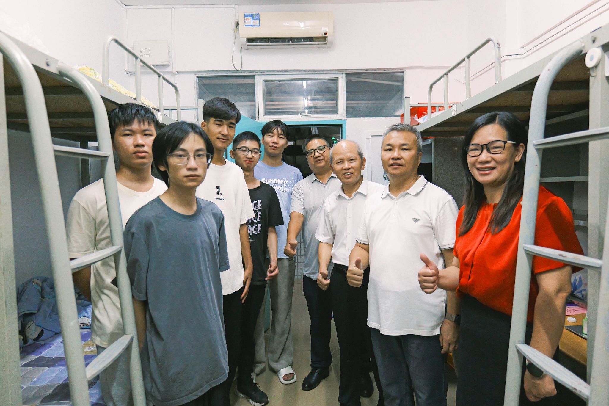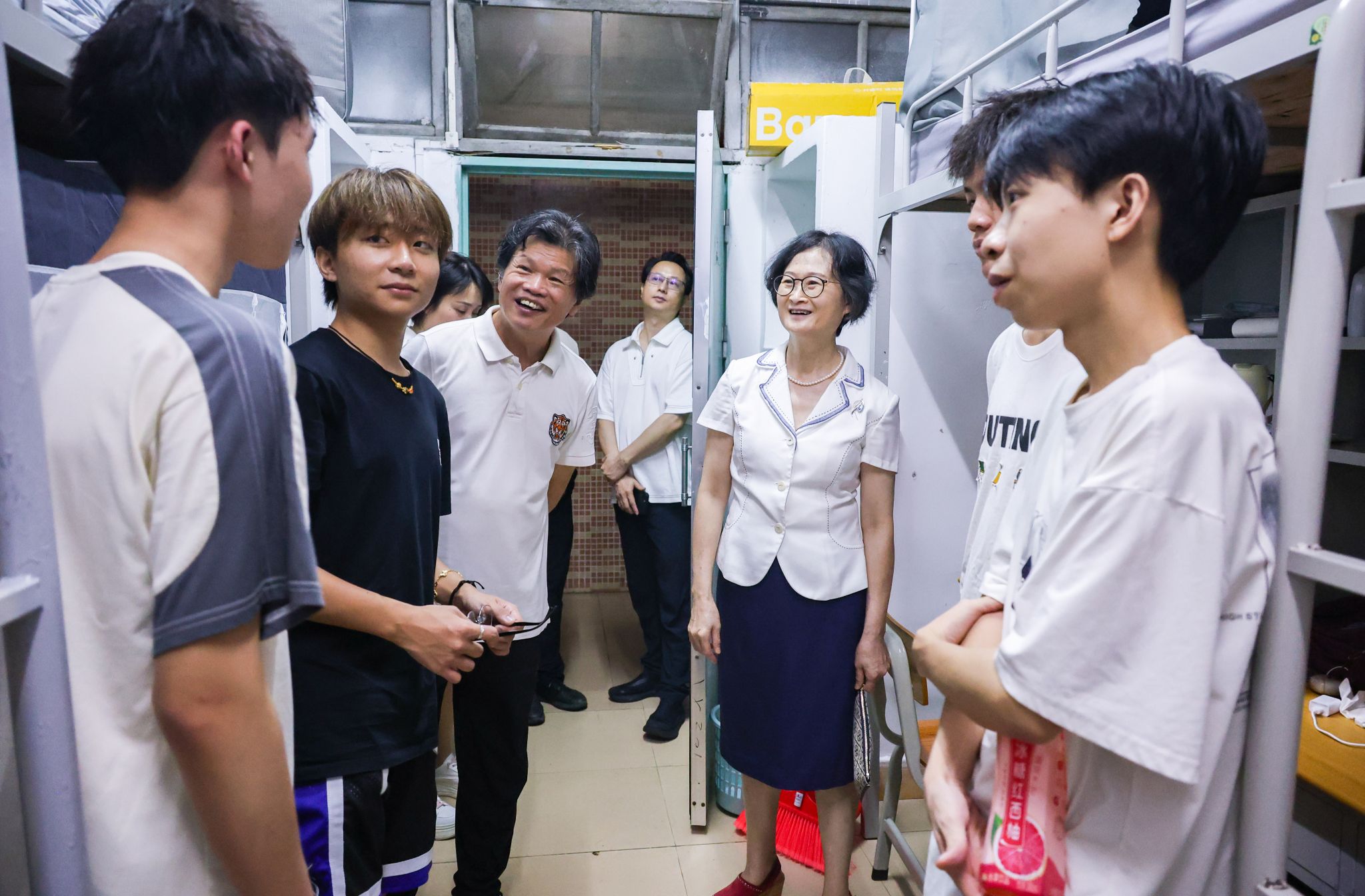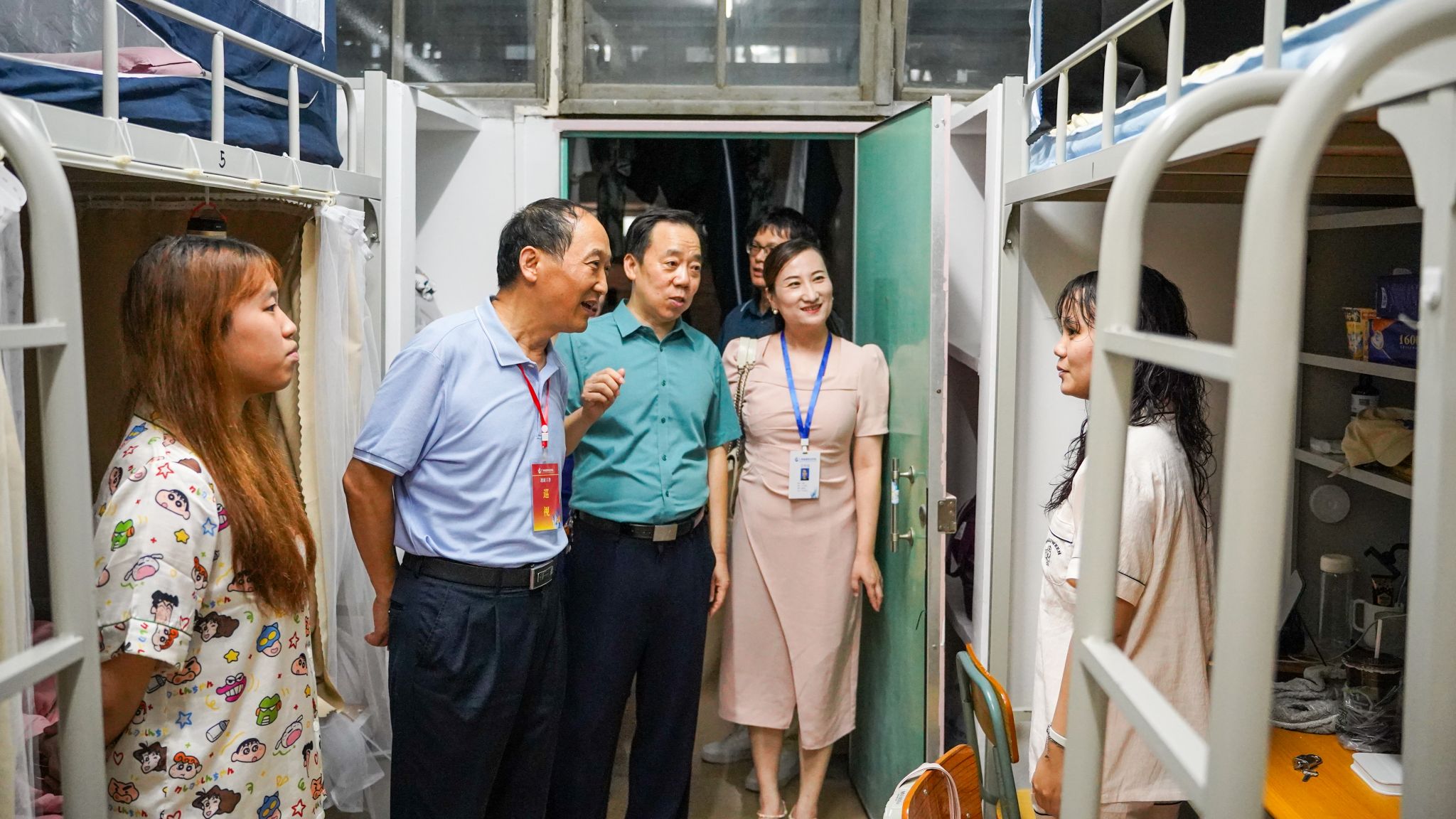 9月7日晚上,全体校领导和各二级学院院长,走进新生宿舍,走访慰问2025级新生。