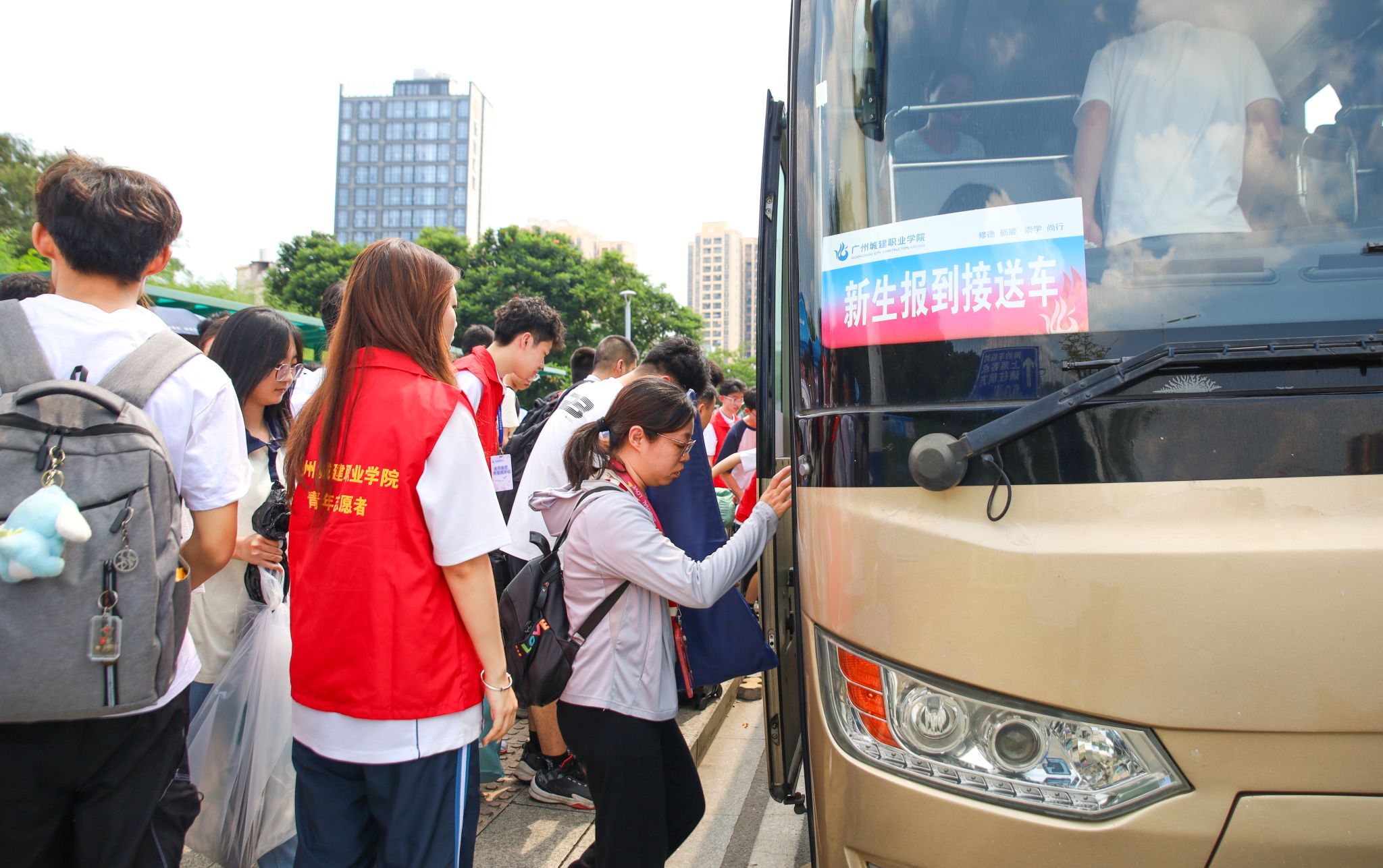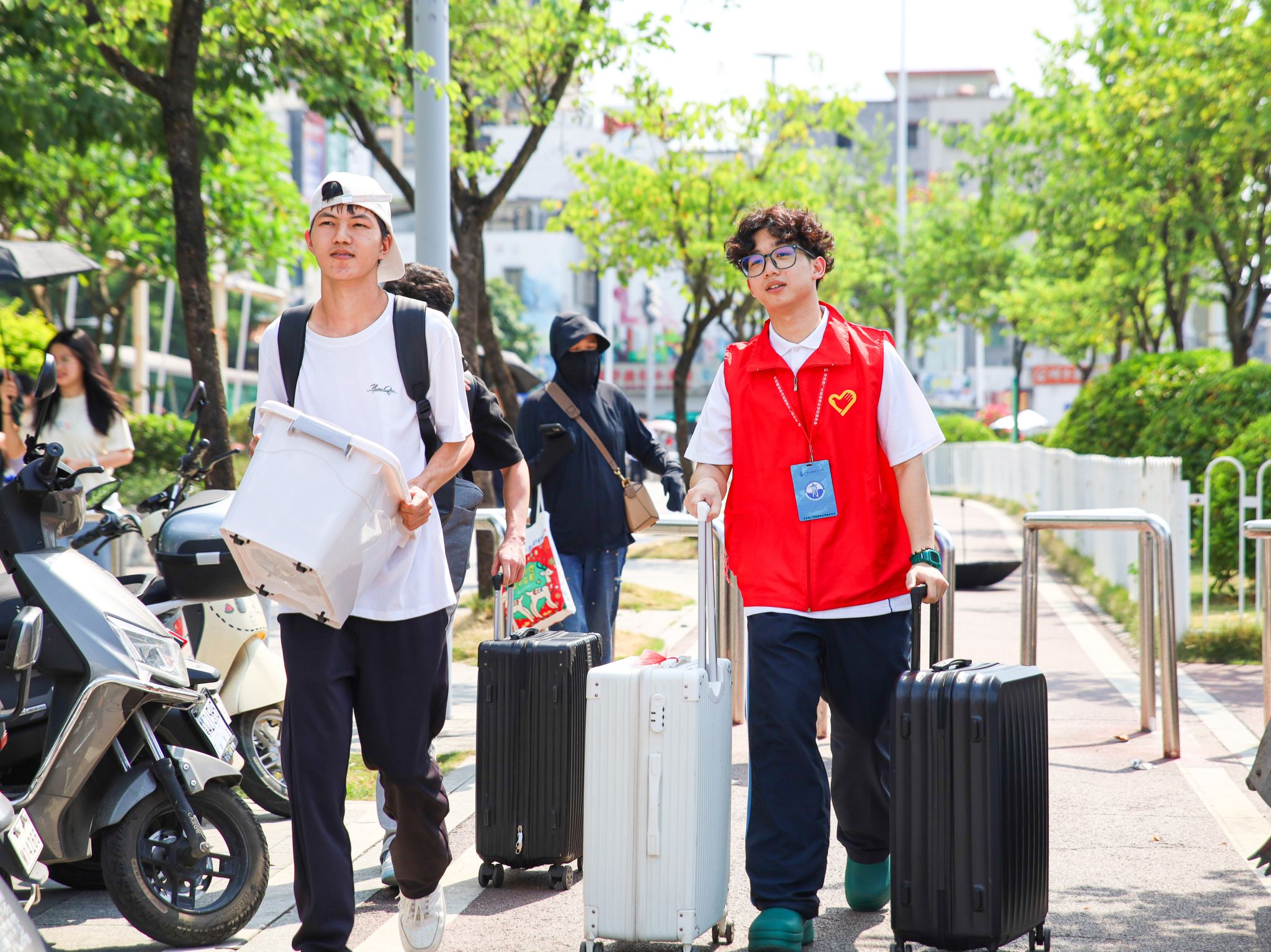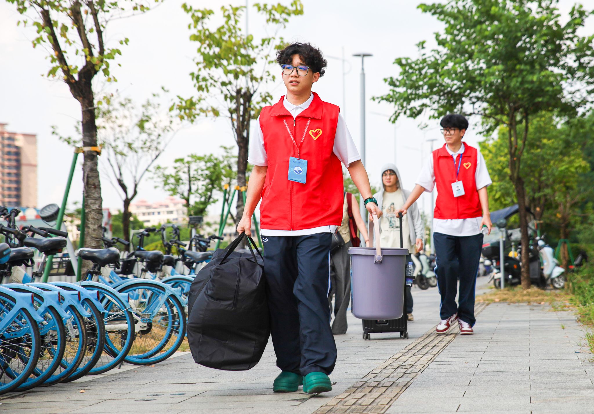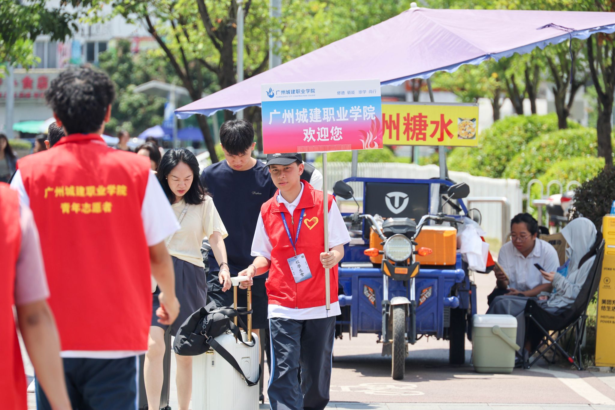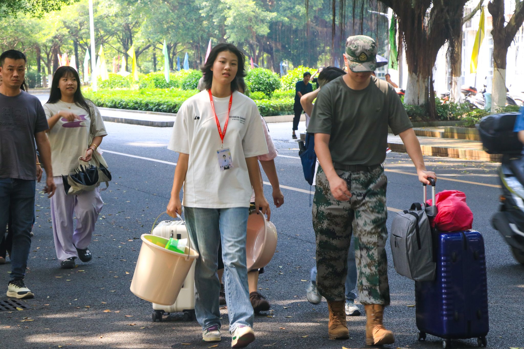 各职能部门齐心协力,高效协作,从接站、行李搬运、校内引导等,全程都有迎新志愿者和服务保障人员热情忙碌的身影。