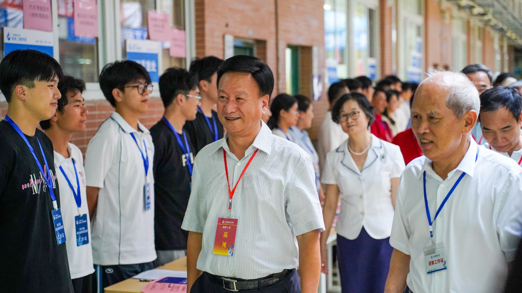新生报到前,学校董事会执行董事、校务管理委员会主任张亚斌,校长李国年等学校领导及各职能部门负责人来到迎新现场检查各项准备工作,确保新生入学报到安全有序开展。