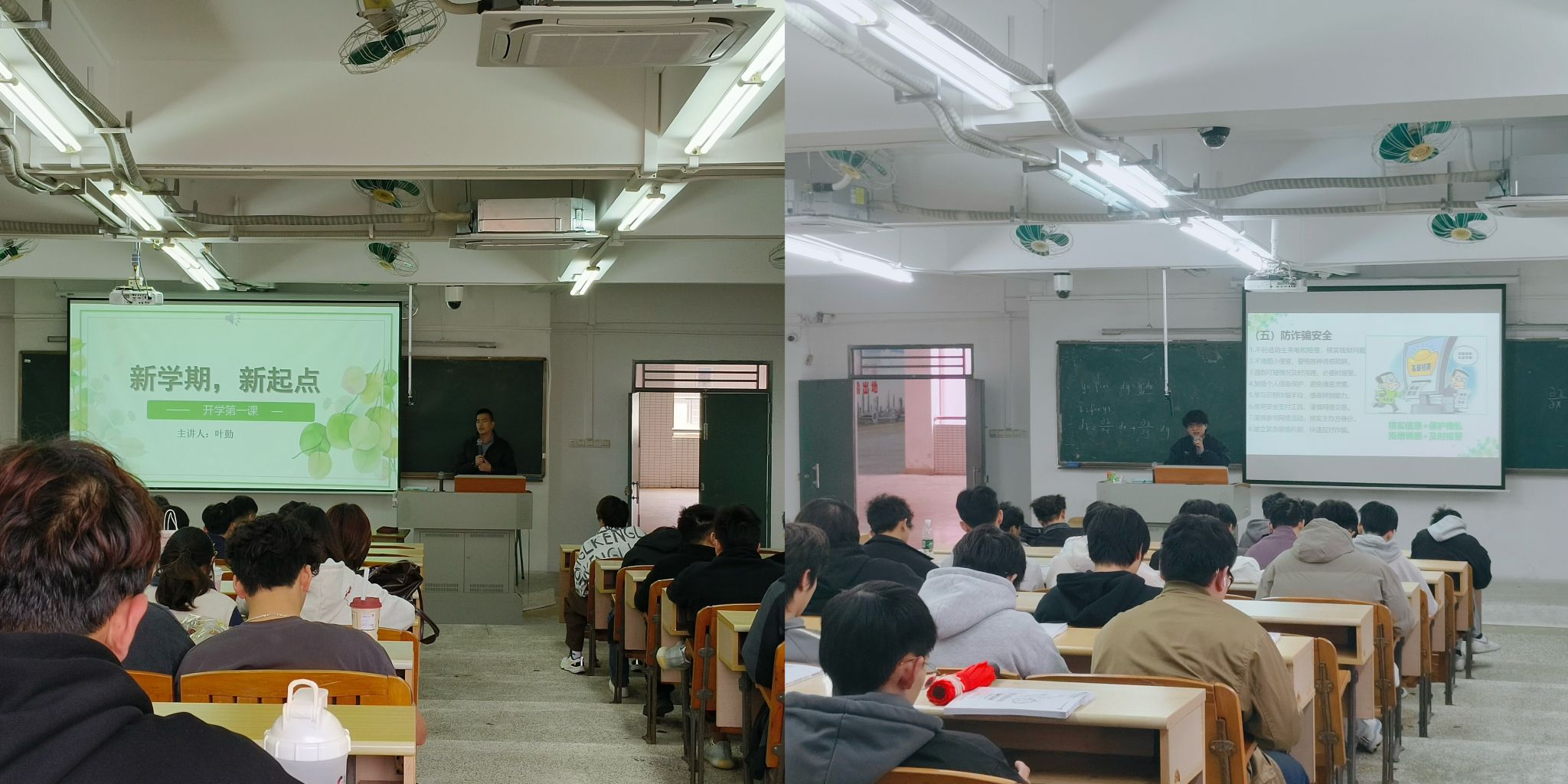 本次开学第一堂主题班会课的课件由经济与管理学院殷金桃副教授主持的大学生思想政治教育辅导员工作室统一制作,内容涵盖思想教育、心理健康、安全教育、校纪校规、卫生礼仪、健康教育等方面。各班级辅导员结合班级实际情况开展授课。课堂上,辅导员借助视频展示、案例剖析等形式,并结合当下如电影《哪吒2》等时事热点,为学生们带来了一堂堂生动有趣且干货满满的开学第一课。