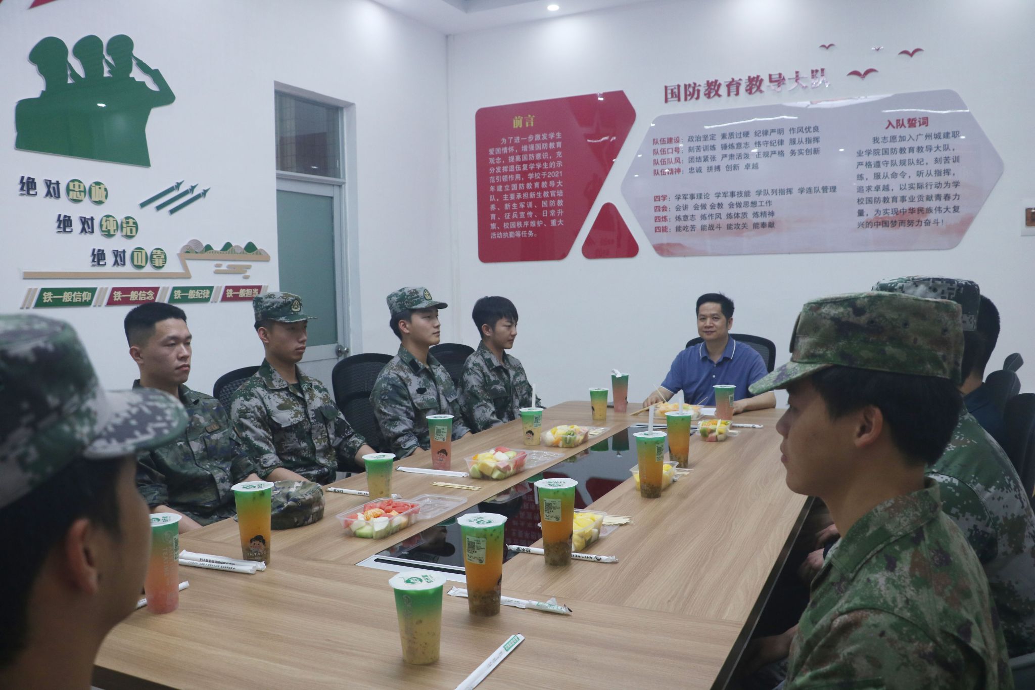4月22日下午,校长助理孔练光在广州校区“一站式”学生社区17栋国防教育特色工作站主持召开退役大学生士兵代表座谈会。