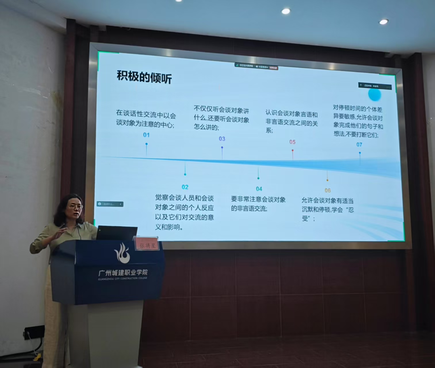 4月23日上午,学校邀请广东省高校心理健康教育工作委员会副主任委员、广州市心理学会精神分析专委会主任委员、暨南大学心理健康教育中心研究员张将星博士在广州校区建工机电楼A101报告厅开展心理健康专题培训。校长助理孔练光出席本次培训,全体学生工作者、后勤处、保卫处、粤华物业宿管部等相关人员参加培训。讲座由学生处心理健康咨询中心主任肖浩杰主持。