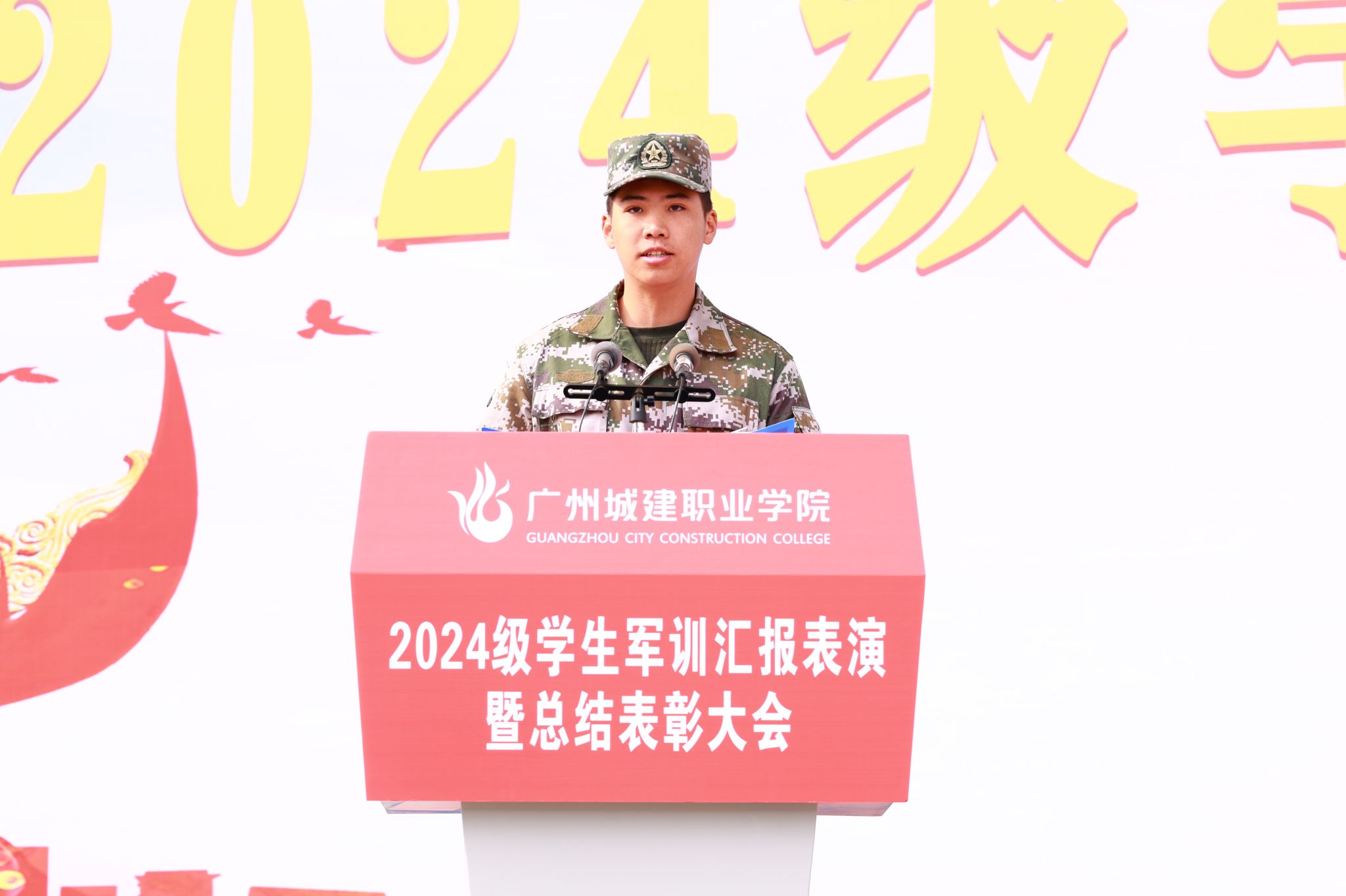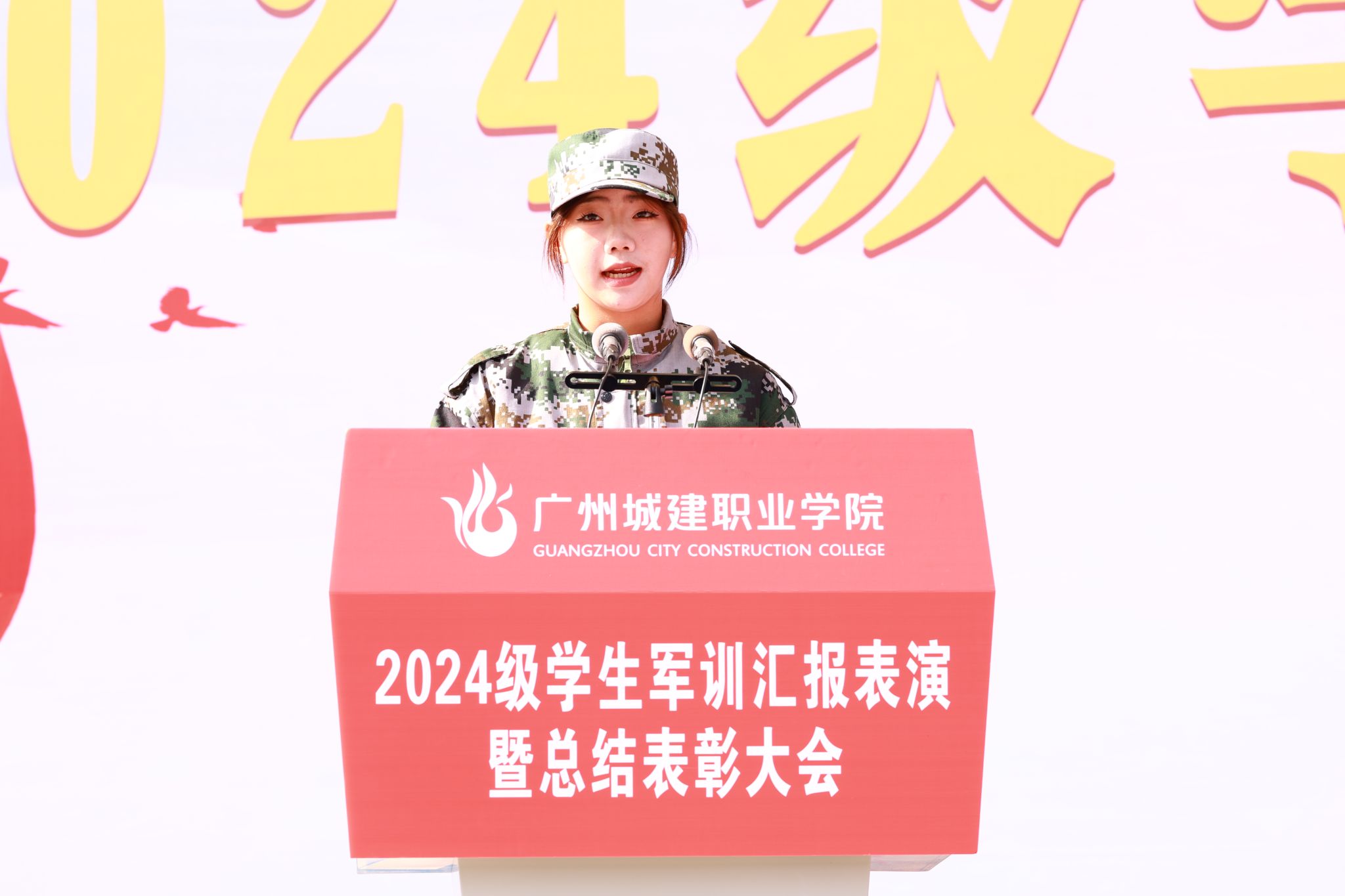 一营十连医药卫生学院 2024 级康复4班蒋新月同学作为优秀学员代表发言。她分享了自己在军训中的成长与收获,她表示,通过军训,不仅强健了体魄、锤炼了精神,更收获了团结与友谊。接下来,她将带着军训所学,刻苦钻研,砥砺奋进,以实际行动践行校训,为学校争光,为时代添彩,书写属于城建学子的精彩篇章。