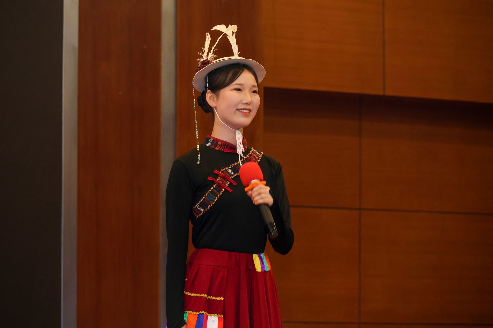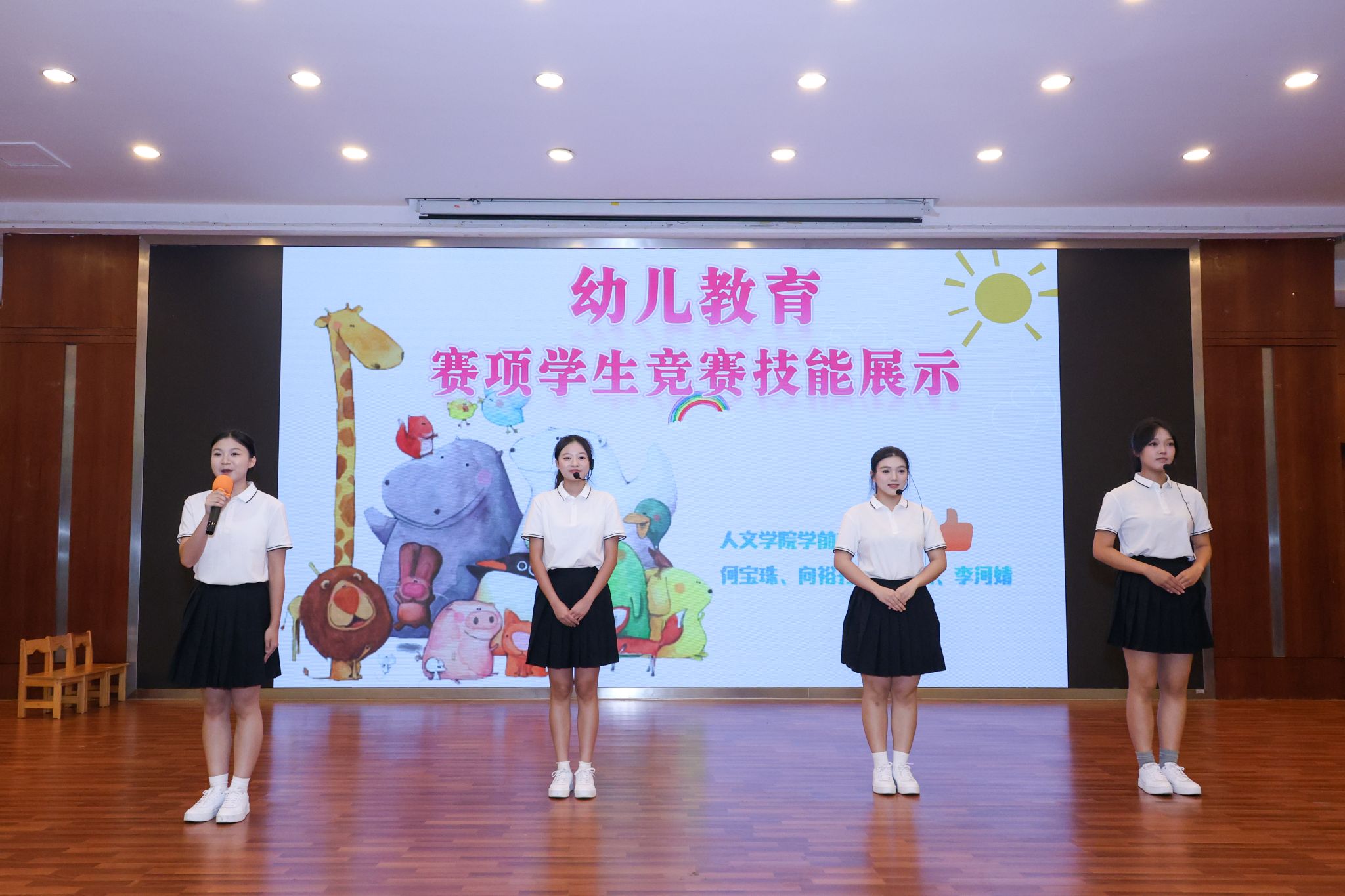 在技能展示环节,2024-2025 学年广东省职业院校技能大赛的获奖团队代表,来自人文学院的何宝珠团队及数字商贸学院的黄烁周团队同学分别为大家展示了幼儿教育技能赛项及导游服务赛项的专业技能,彰显了同学们高超的技能才艺。